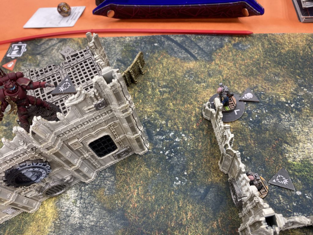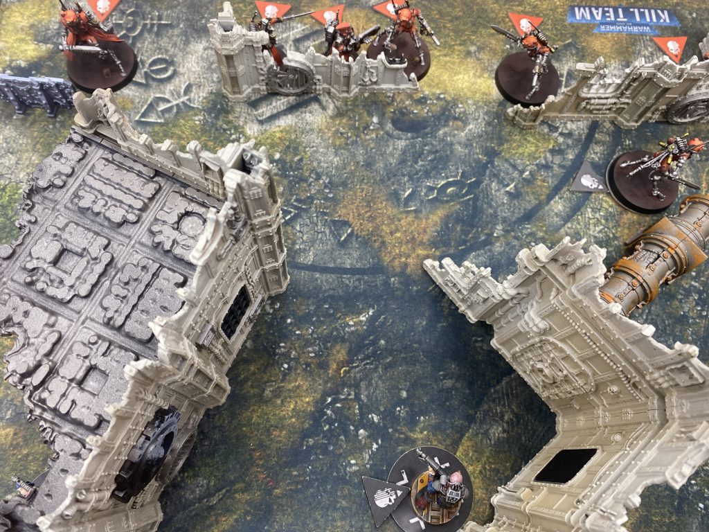 Meticulous Plan to pressure the objectives early. Joe immediately put me on the back foot by using the Ploy that allows him to switch multiple operative orders on Turning Point 1 if he had selected Infiltrate during the Scouting Phase (which he had) by eliminating three of my operatives, two of which I had used to take objectives, and my Grenade Launcher Gunner. In response I managed to eliminate one of his Gunners and an Infiltrator.