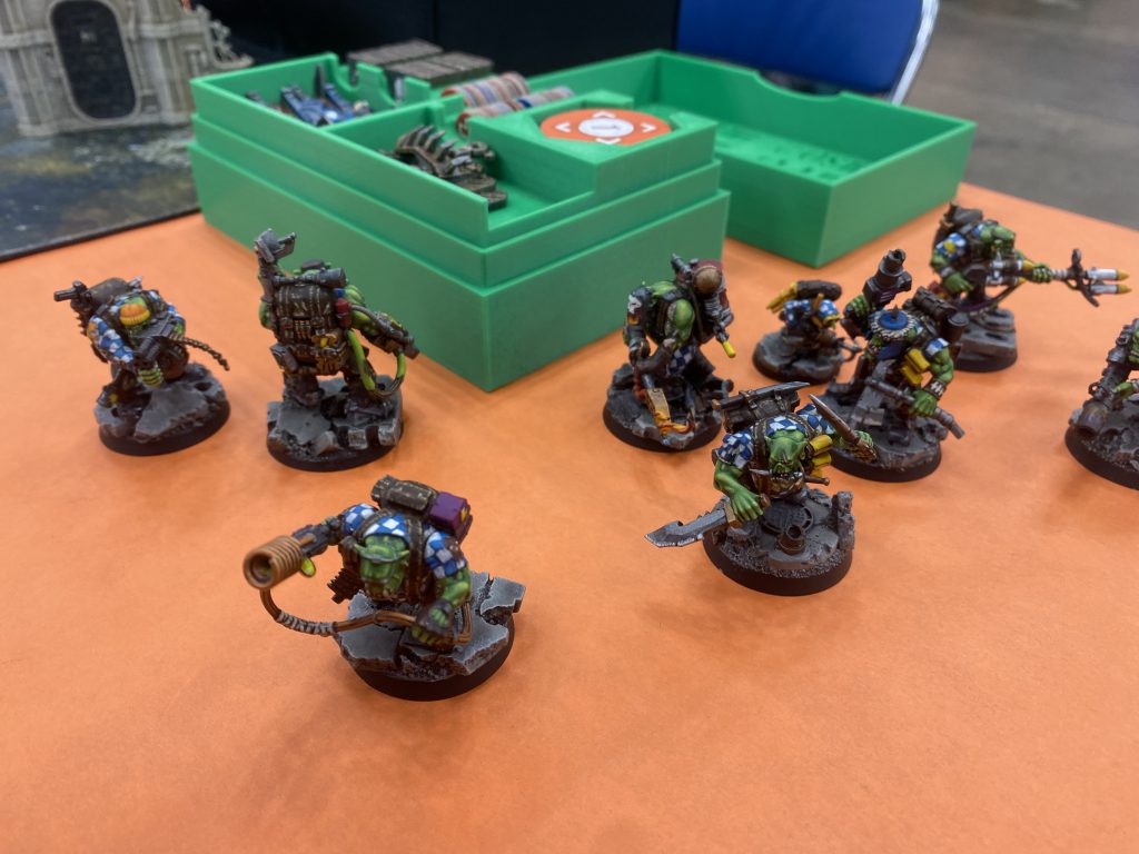 One of the highlights of the event, and really the weekend, was Tim and his friends. Hailing from the Chicago area and sharing the desire to just have a good time they had all decided to run Greenskins with the gimmick of bringing 16 Gretchen backed up by several Boyz with Rokkit Launchas.