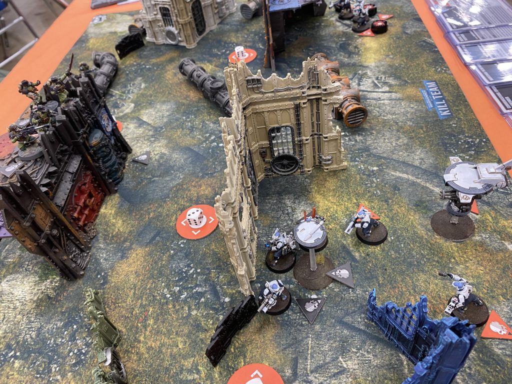 Patrick kept up the pressure and put me on the back foot from an early point, and the only thing that prevented me from being overrun was my Kelermorph who had taken up residence in the center and was poking out of cover long enough to eliminate a target, and then dash back out of Line of Sight. Both of us largely botched completing our secondaries, his coming down to his chosen Marksman failing to eliminate two targets two turning points in a row. The final score basically came down to luck of the dice as both of us had made similar mistakes, and it was only due to a couple poor Snipa Boy rolls that I was able to squeak this one out.