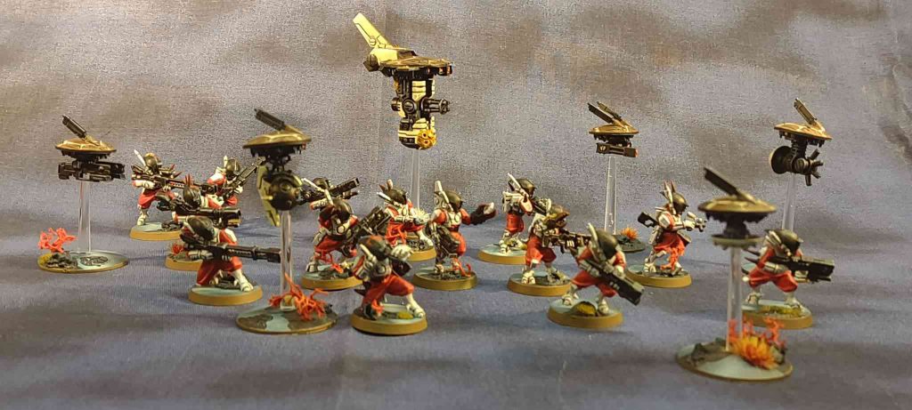 Recon Drone got touched. As long as boards move towards more room for visibility, then the team will remain good. Markerlighting to push yourself to rerolling twice, on 3s remains important. While the weirdness of ITD has been trimmed on the forward deploy. The big change is on recon sweep’s turn 1 capabilities, which means you can’t hit people on the opening move in their deployment. You can still however threaten most midboard positions. So it’ll be a big skill differentiator.