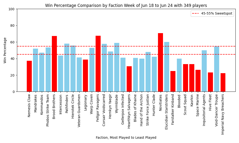 Over the last 3 month period of play an encouraging trend has emerged, with mixed ranged teams coming back to the forefront. Between Blooded, Heirotek Circle, and Fellgor resurgences the meta has been in a somewhat healthy spot. However Octarius terrain being the standard has definitely shifted things towards a somewhat more melee horde focused environment. Fellgor in particular have trended towards a 55+ win rate, while maintaining high win rates.