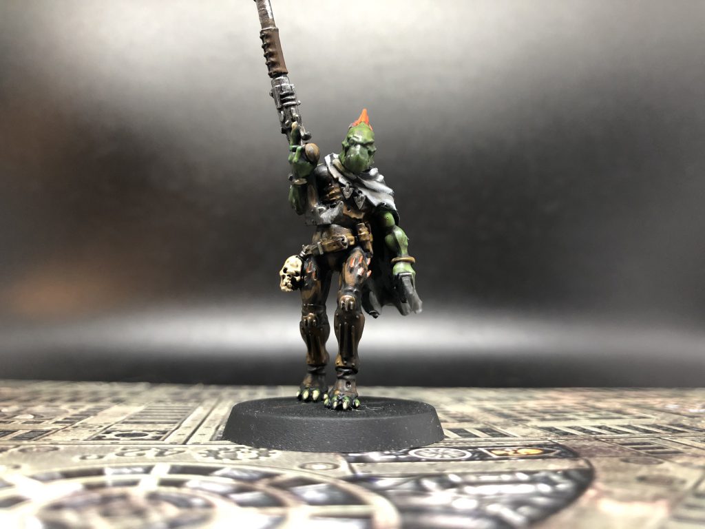 The Sniper of the team. With a 3/3 rifle hitting on 3s with Heavy and MW3 rules it’s a decent gun to start with, but combined with the Long Sight unique action giving it Lethal 5+, Silent and removing the target being Obscured, then it’s a great weapon to sit on a Vantage Point while in Conceal. Possibly limited use on a space hulk, but very good on an open board.
