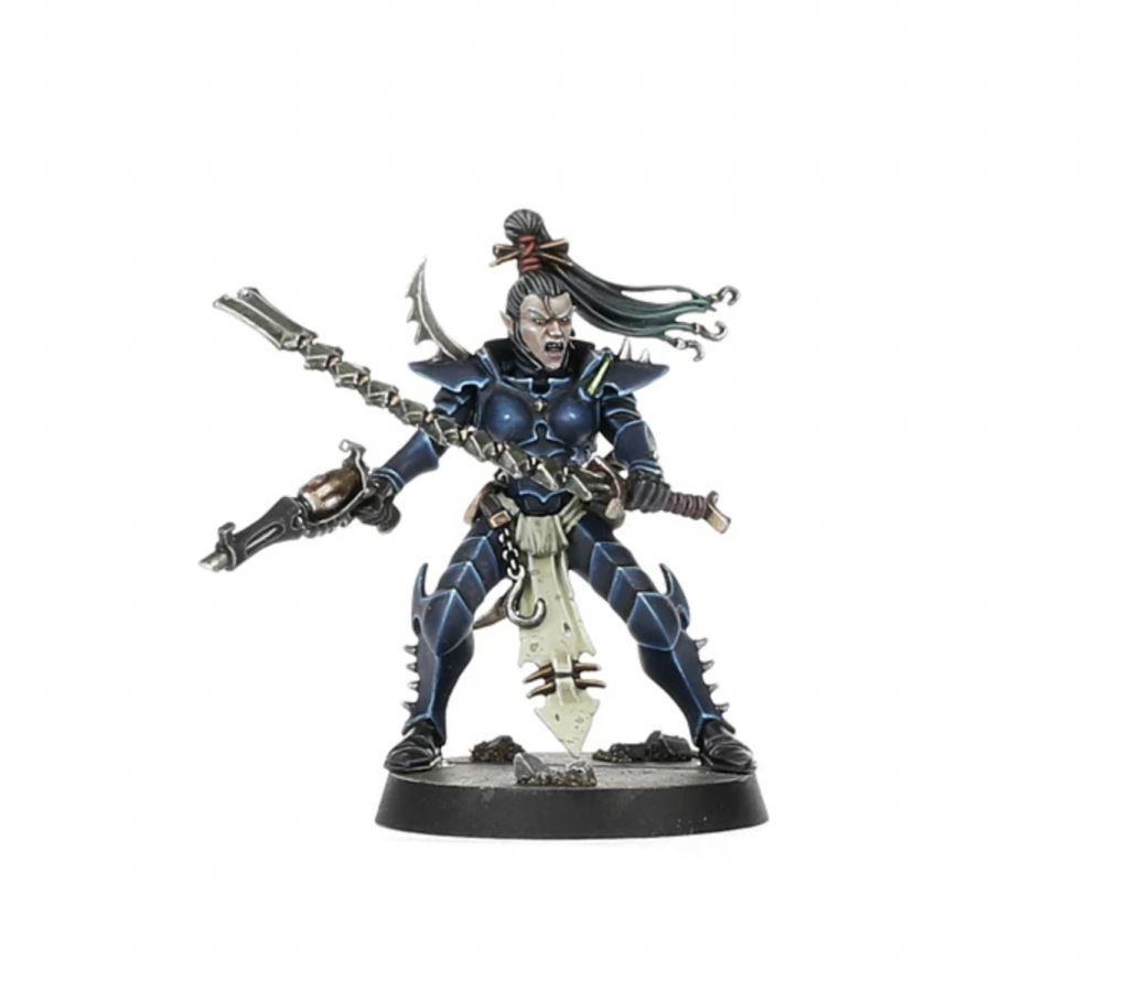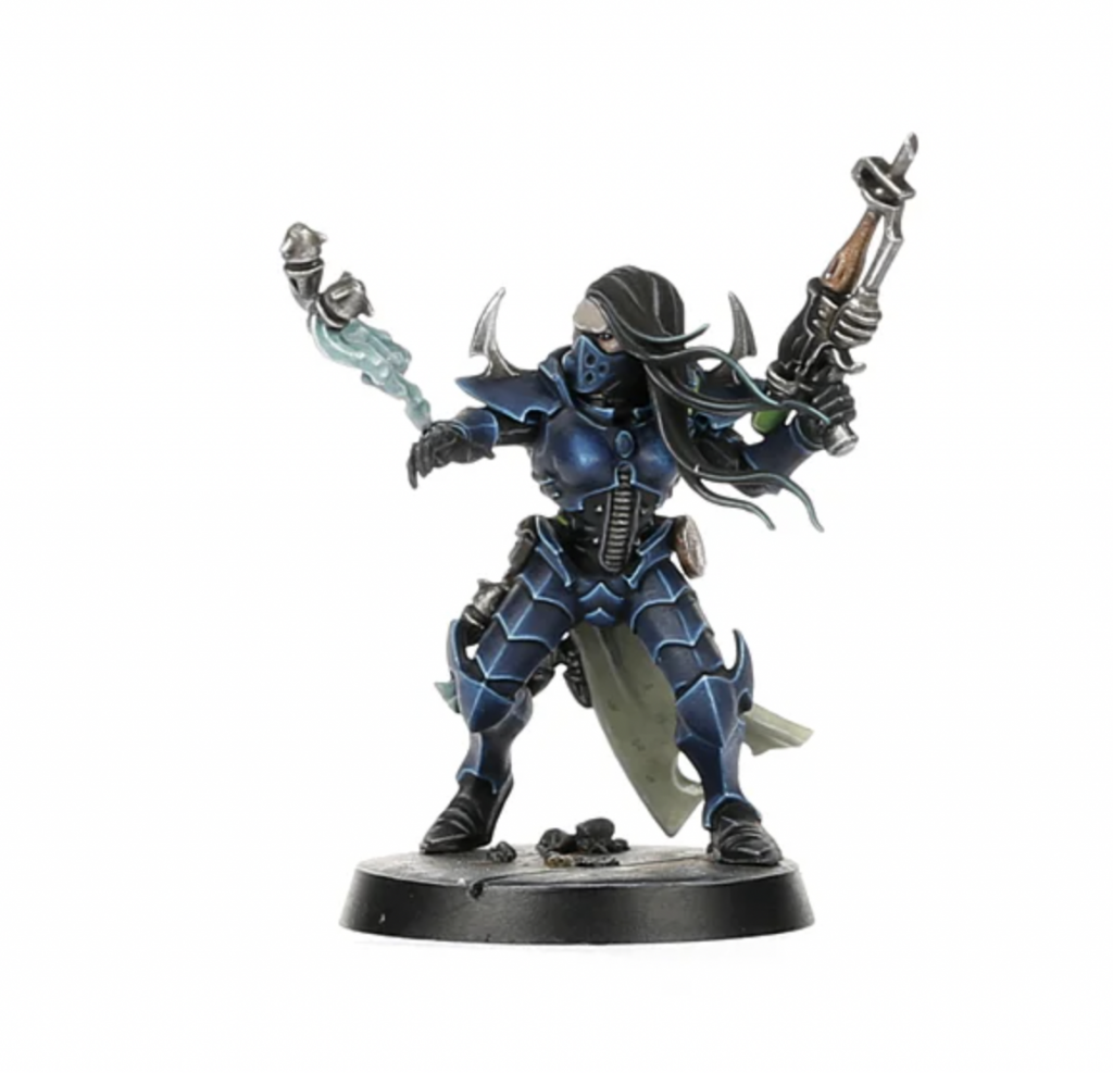 Kabalite Elixicant, the medic of the Kabalites, isn’t too keen on saving lives, but she brings a slew of Combat Drugs if brought into play, giving all friendlies either a 6+ Feel no Pain, or +1 normal move. She can also Administer Drugs to heal 1-4 wounds or switch which set of drugs the targeted model has.