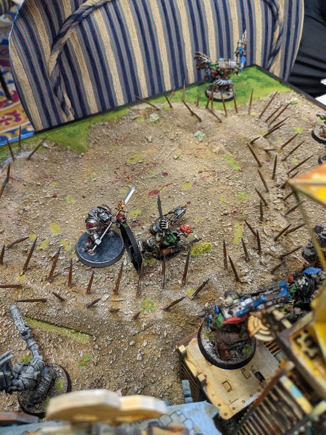 Custodes, on the other hand, were extremely challenging. Most of my strong strategies depend on having fewer models that my opponent, taking kill more, and then winning objectives on morale in round three or four. I tried to counter with positional objectives, but a Custodes veteran move and first turn charge locked up two of my GKs and I couldn’t get them around the board where I needed. I’ll definitely need to practice a few more games against Custodes to develop some alternate strategies there.