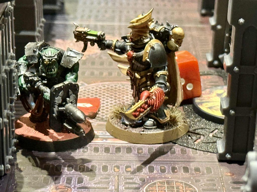 My second opponent is familiar to anyone who’s been reading Goonhammer for a while now: Andrew Corban, Hero of the Imperium. Except he’s on an Ork kick lately, so hero of the Ork-perium?We’re playing on Gallowdark, as I want some more practice with close quarters killzones with Tomb World around the corner. I’m torn on how this matchup will go for me, as both of our teams counter the other in some way. For Nemesis Claw its more obvious, since I can use Comms Jammers to shut down his ability to gain more APL. Wrecka shooting is a real problem for me though, since he can brute force his way through my protections from In Midnight Clad with Wrecka points and weight of dice. I’ll need to be very careful to give Andrew as little opportunity as possible to shoot me and instead fight him up close to stay safe. All while avoiding the Squigs, which I hate, and make sure to threaten with a hammer upon his arrival to my residence.