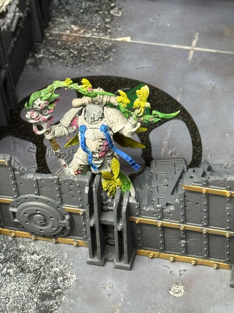 I’ve played Dave a few times now either at the weekly game nights at Goldmine Games or at local events, and each time he’s been a lovely opponent. Our record against one another is pretty even as far as wins and losses go, which is great for me and practicing with this new team. He’s on a new team too, and my heart sinks a little when I hear what it is- Plague Marines.
