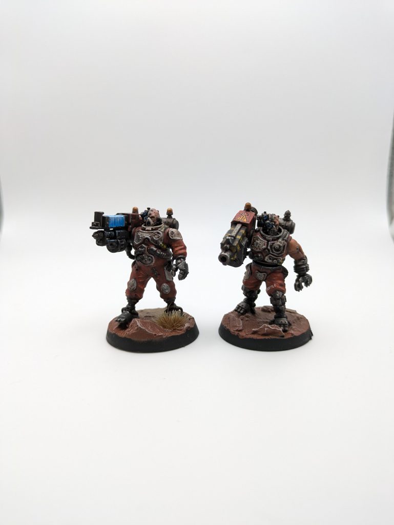 Chunky boys with 11 wounds, and the BIG weapons. We are required to take both Heavy Bolters and a Heavy Arc Rifle servitors which are both laden with Heavy (Dash only). Both hit on 4s in shoot actions and fight actions. While their Augmetic Claws have 3 attacks ⅘ damage and Brutal. Since you can boost the melee to Shock, Severe and 4 attacks total the Gun Servitors can do a fair job when retaliating. However you’re really here to let loose with the fancy weapons. The arc rifle sports 5 attacks on 4s, 4/6 damage, with piercing 1 and Stun doing a pretty good job at deleting or maiming most targets. Meanwhile the heavy bolter is the same as many other teams with focused and sweeping profile. A good reminder than on gallowdark and inside Volkus strongholds the sweeping profile’s torrent 1” rule granting lethal 5+ makes the piercing crits 1 rule that much more consistent.