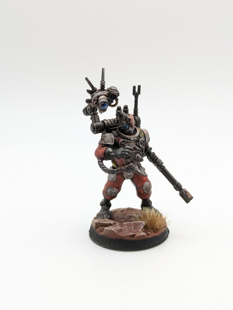 The second hero operative on our team definitely more focused on the tempo of our servitor operatives. Both unique actions let us manipulate our servitors actively with Noospheric Spur granting a free Dash action to a servitor within 6 of the underseer or auto-proxy operative. While Network Override has a servitor perform a network counteract mid underseer activation. This means the underseer can get your servitors to function almost as 4 apl activations with 2 separate moves, or the ability to flip back to conceal orders when under fire. Offensively we’re focused on the Master-crafted radium pistol which is 8” range 4 attacks on 3s for 2/4 damage, with Balanced and Rending. Best to just avoid thinking about our Dataspikes ⅔ damage as hitting on 5s leave it solidly in the realm of hail mary territory.