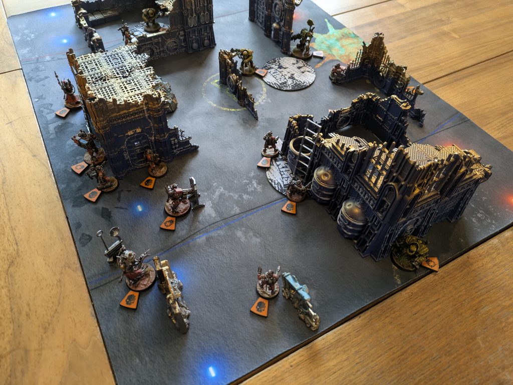 One of the less obvious abilities is our leaders ability to omniscan and grant Ceaseless to any visible target twice a turn. Once as a strategic gambit, and again during its activation. Between that combination 2 big guns, and the Concealed Apparatus equipment, we can play a fairly loose turning point 1 positionally. Leaving our meltagun, and lascutter very far forward on an initiative gamble, only to turn into less valuable operatives if we lose initiative. If we win however we can get a ceaseless weapon firing into midline operatives and force our opponents to deal with our combat servitors. If they fail to kill them, we can then Network Counteract and let loose a second time in quick succession. Don’t forget that we can use equipment terrain to help us bait out opposing shots with our MVPs babied by our medic operative. A 3+ save sitting on an objective with a tactical re-roll, medic, and potentially a 5+ shrug is a startling annoying target to gun down!