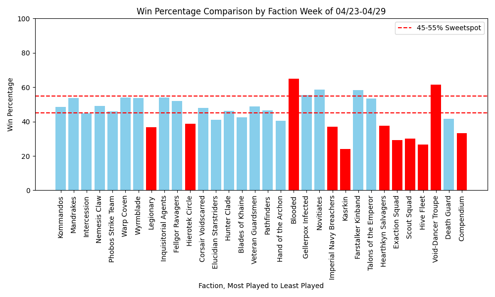 Void-Dancers remain at a reasonably high worldwide win rate, though their play rate has fallen off a cliff. This week was truly a week of feast or famine with a large chunk of the meta cratering in win rate. It seems that the days of