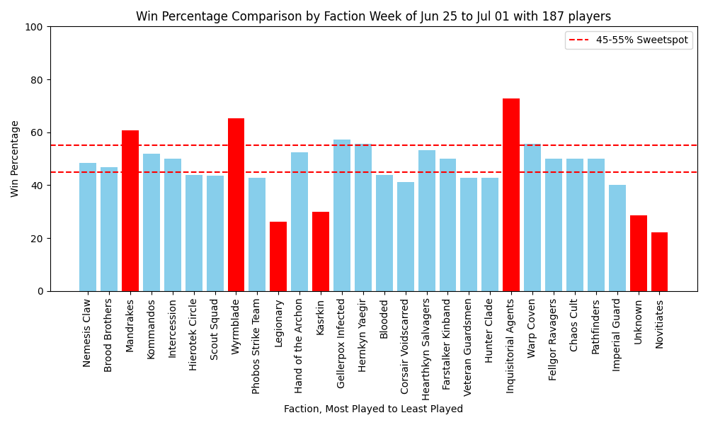 Welcome everyone to the first week of data after the dataslate. It's week two of standardized Termination play, and a small weekend of tournament data; with only 187 players involved in Kill Team this weekend, we've got some interesting results and 2 UTC tournaments. Lets hop to it!