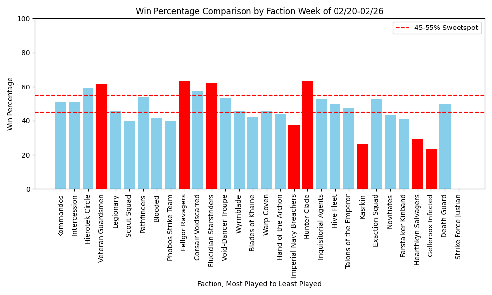 It seems like this week we had a few of the meta boogeymen rear their ugly heads, with Vet Guard, Felgor, and Starstriders, over a 60% win rate! Some surprise hits here in Heirotek, and Hunter Clade performing much better than their past performances. Notably part-time contributor Can You Roll a Crit, lost a finals match against a Heirotek Player while piloting Kommandos. It was a 1-point loss, but still it seems that Heirotek may have some solid footing in the future! Hunter Clade performed well this weekend, in Tacoma, but with only 3-rounds, we’ll never truly know if they had the chops to take down the Starstriders or Void-Dancer’s they’d have had to face.