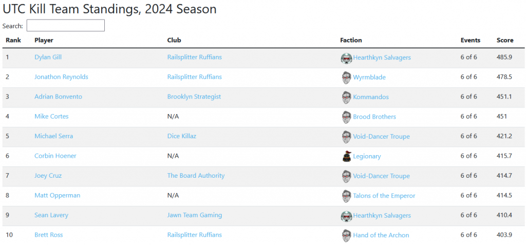 Big names in the global Kill Team scene like Orion, Adrian, and Dylan shoulder to shoulder, literally, with other UTC region champs and players in a tight 5-round over the weekend. Fresh off the heels of the big dataslate shake up to the team standings, most players came in hot and ready to battle their way to the top of the standings. If you're curious about the standings they're found