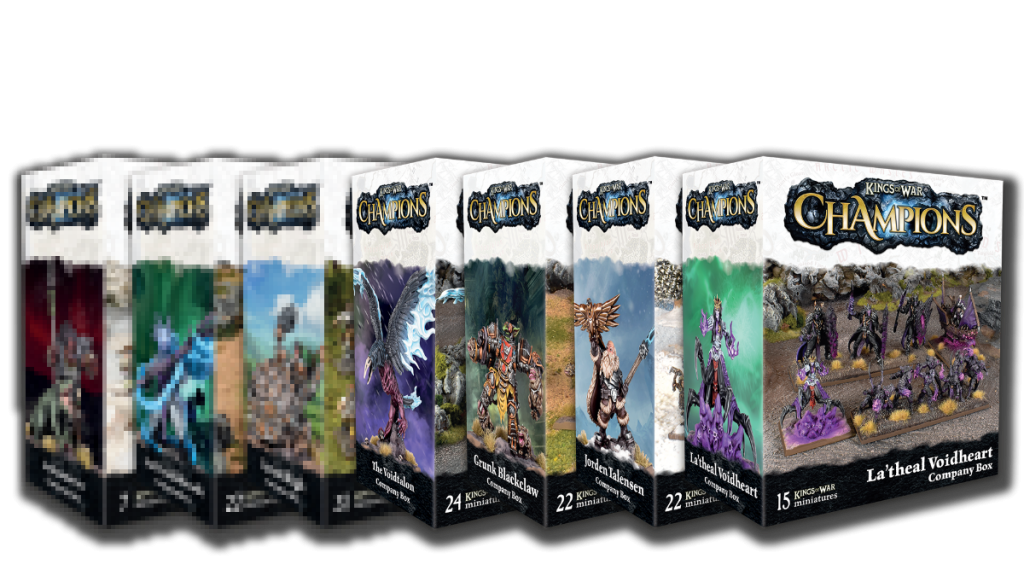 The plans thus far are for 9 companies from 9 factions of Kings of War, each led by their own unique Champion. Thus far we have revealed: