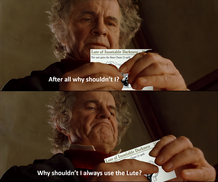 The most common item to add to such heroes is the Lute of Insatiable Darkness, which bestows the ability to cast the spell Bane Chant for buffing our front line. Other interesting options include adding Heal or Wind Blast can be an interesting pick through the respective items Shroud of the Saint and Zephyr Crown.