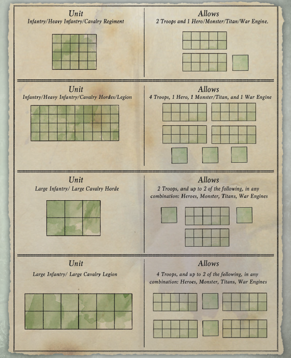 Before we dive into the list, it’s important to cover the primary mechanic that limits list building in Kings of War. The world of Pannithor is full of fantastical monsters, epic heroes and devastating war machines, yet to take these in an army, one needs a sufficient number of ‘unlocking units’. For instance one regiment of infantry (20 infantry) allows you to include one monster, hero, titan or war engine, as well as two troop-sized units. The bigger the unit size, the more unlocks granted, with a handy diagram in the rulebook (see below).