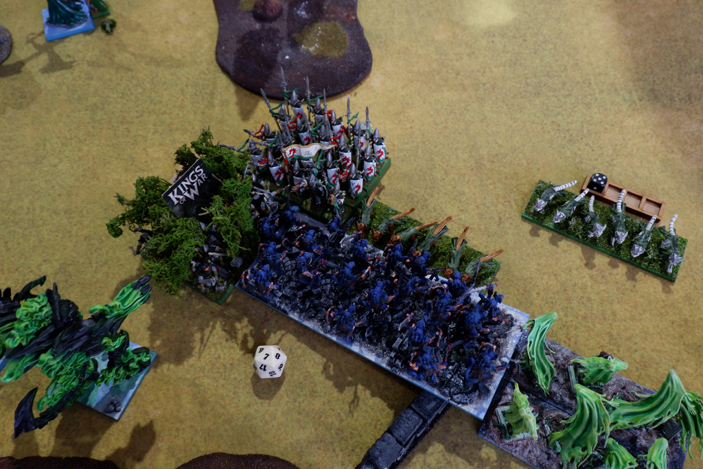 Combat on the left half of the battlefield was more muted. The Lower Abyssals slowly advanced on the Gladestalkers and Sea Guard. These rained down arrows from the cover of the forest. The horde of Lower Abyssals took an opportunity to remove some Battlecats, but unfortunately only wavered them. This left the Abyssals’ flank exposed to the Gladestalkers who promptly dissected the demonic wretches from the battlefield.
