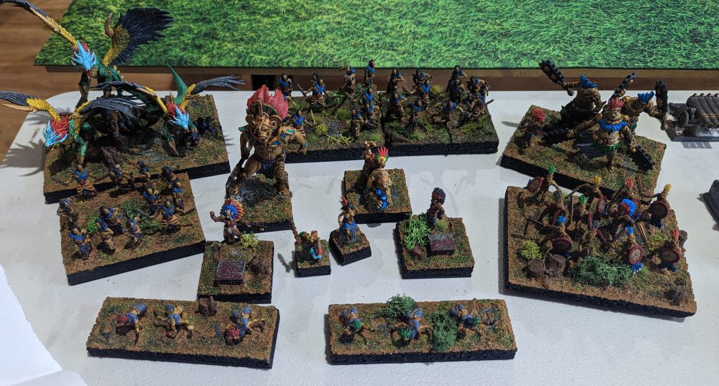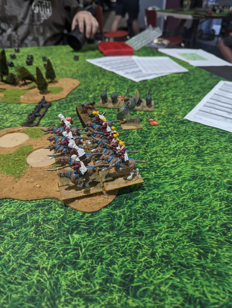 It’s another all close-combat army list to bookend my Clash of Kings experience. It’s a fast list, with a lot of hitting power. Luckily for me it didn’t have much terrain mitigation, so I hid in the forest and lake on my side of the board. I also had some nice shooting lanes for the Magus Conclaves.