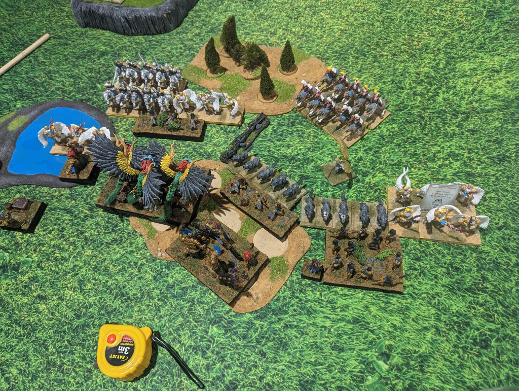 This felt like a winnable game, but for some bad luck. Getting the Fallen stuck on the Gur Panthers was huge, as was the Lord on Frostfang not killing the Elohi, and the Frostfang Cavalry’s double-one. Yet, they should have gone for the Panther Lancers anyway, but the result would have been the same. I probably should have also deployed the whole army on the right with the forests, and that would have reduced the worry from the flanking units. Another thing to remember next time I play against a fast army.