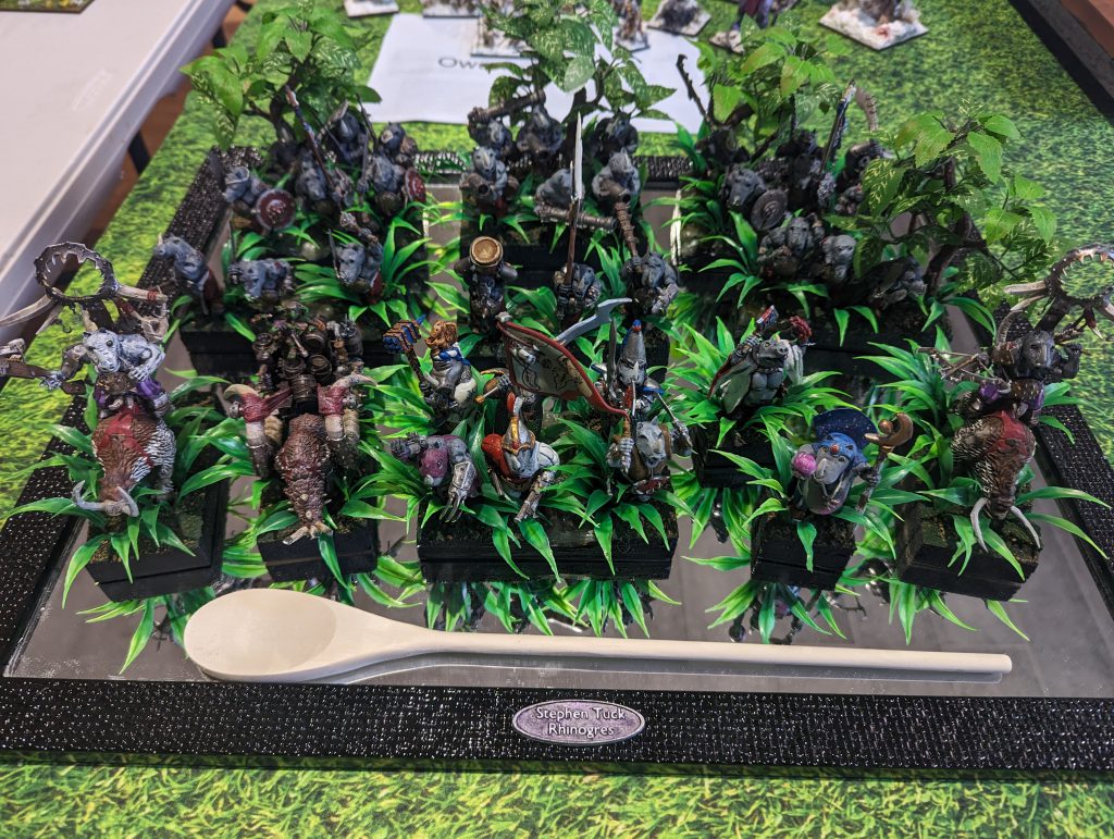 In at an equally close third placing was Stephen’s Rhinogres. Sporting just two Ogre Warlocks (including Nom), this list has a diversity of units not typically seen in Ogre armies.