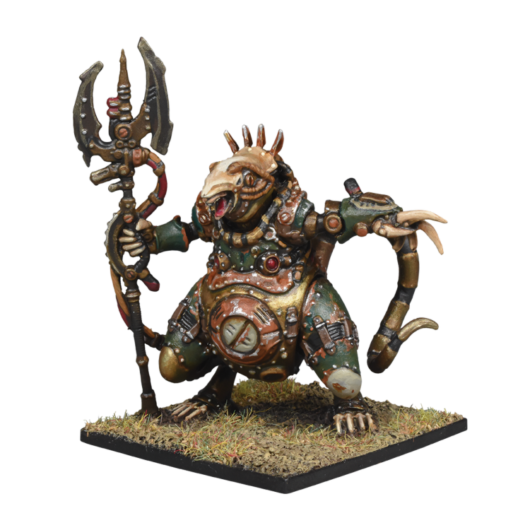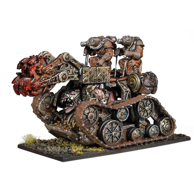 Basically a smaller pre-industrial tank with a car crusher attached. It is fearless, relatively cheap and can bring the pain. Mantic already makes a great model for this, but in the fluff, no two Ratkin war engines are the same, so it’s also a spot to flex your hobby skills and build whatever janky death machine you like.
