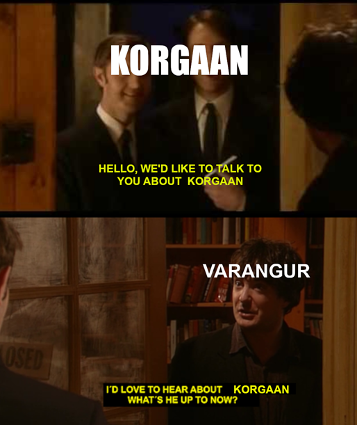 Korgaan is not to be confused with the Wicked Ones of the Abyss, in fact he thinks upstart Abyssals beneath him and his Varangur actively pursues the daemons wherever they might be found. This contempt is similarly shown to the Celestians, and so the Varangur seek to show the world that only Korgaan is worthy of worship.