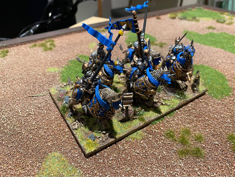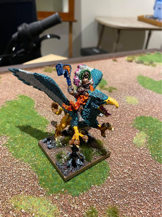 The guy the Honour Guard are guarding. The leader of a city in the League, mounted upon the eldest and strongest Aralez. This guy can be a huge threat in the flank, but is more useful early game as a buffing character, giving an aura to reroll failed nerve checks, as well as healing a wound each turn. Keep him behind the lines, and throw him out towards the end of the game to finish off weak units or to grab an objective.