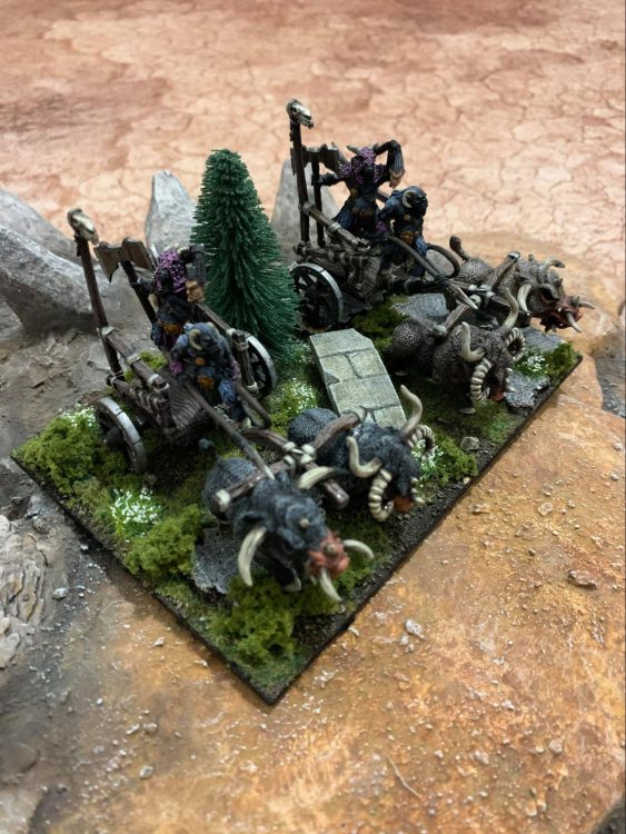 Absolute beefcakes (heh). Real tough and real strong, though not the fastest around, these chariots will put the hurt on whatever they hit, and give you a great modeling opportunity. Want the minotaurs to be pulling the chariot or on it? It’s up to you.