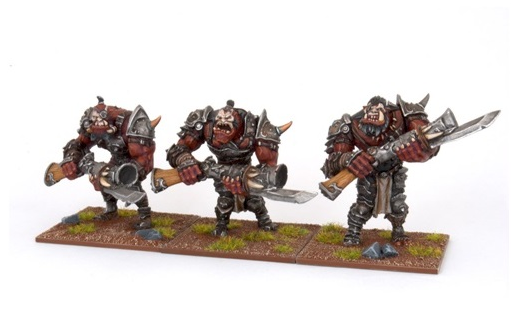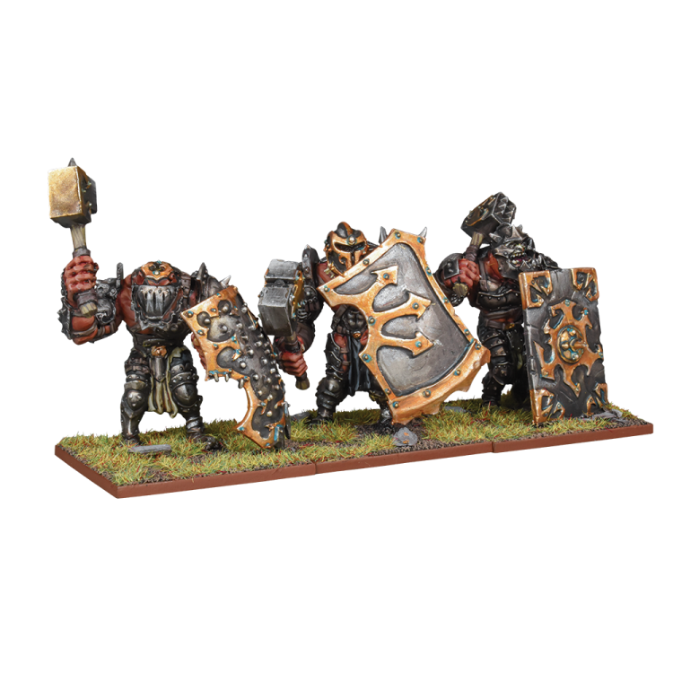 Ogres excel in close combat fighting, but many are drawn to firearms, and some to magic. However, in all cases their choice of approach to any fight is to apply overwhelming force. It is for this reason that many goblins flock to their cause, swelling their ranks with some much needed cannon fodder. The great Giants, too, are drawn to the power of the Ogres, and so when all working together not even fortresses are safe.