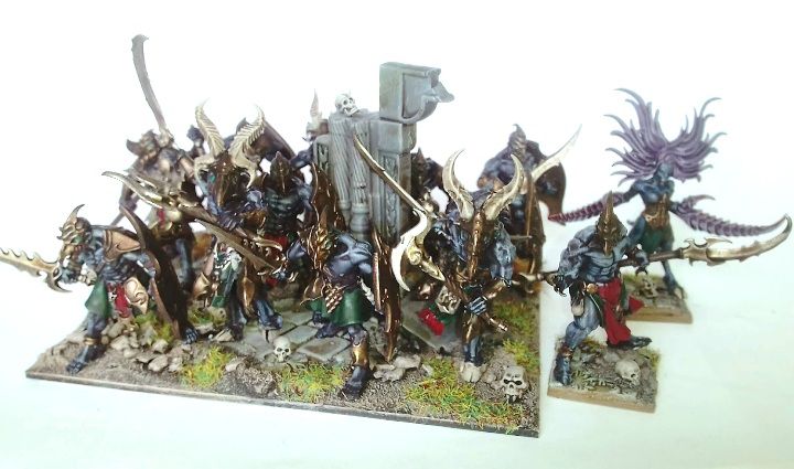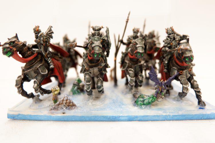 The Abyssal Horsemen are a top notch heavy cavalry unit, boasting a mix of Crushing Strength (1) and Thunderous Charge (1); they can keep on hitting if the combat drags on. The combination of Defense 5+, Fearless -/16 Nerve and Regeneration (5+) makes them even capable of taking a charge. If the Gargoyles are needed elsewhere, the Horsemen are likely to be fine on their own in a pinch. Couple these fine horsemen with Nagarri and Abyssal Mutations and these will be very annoying to remove.