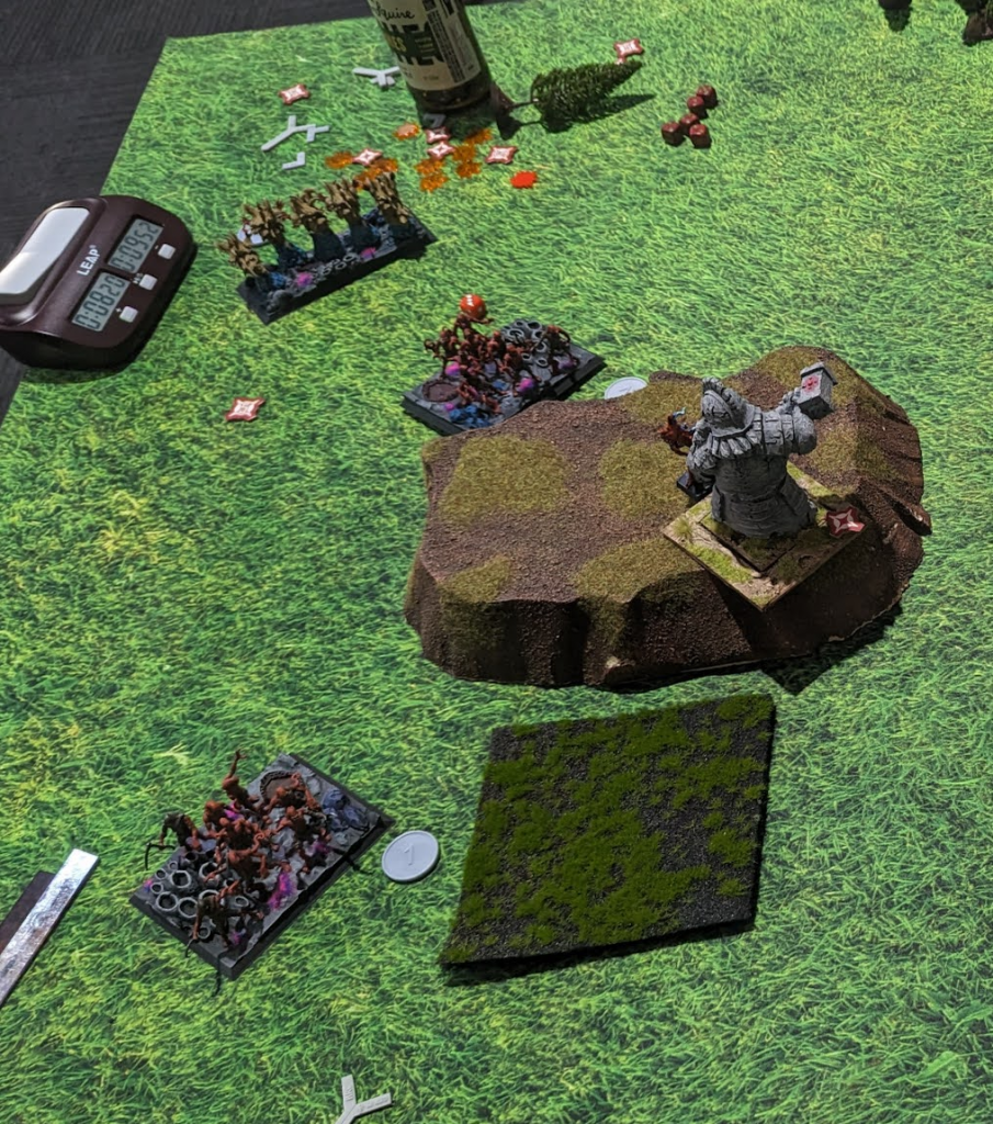 Terror (now replaced by MDF base) getting flanked by Greater Obsidian Golem... not good! Credit: Urr.