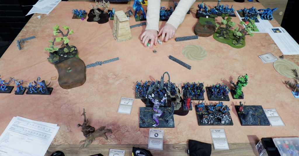 The more terrain is on the table, the more interesting the battle gets. Most players think of the effect of terrain on shooting, but when there’s a lot, even the basics of combat such as who can charge and when, become far more exciting. My favourite example was on the Sylvan Forest table; the density of forest terrain meant that the threat ranges of my units were all over the place. My Naiad Wyrmriders are pretty fast at Speed 8, but if they’re behind and not inside the forest, they can only see the trees in front of them. Suddenly the battle becomes a game of cat and mouse as players use all the forests to pick and choose when units are visible. No wonder the Romans had a tricky time in the Teutoburg Forest.
