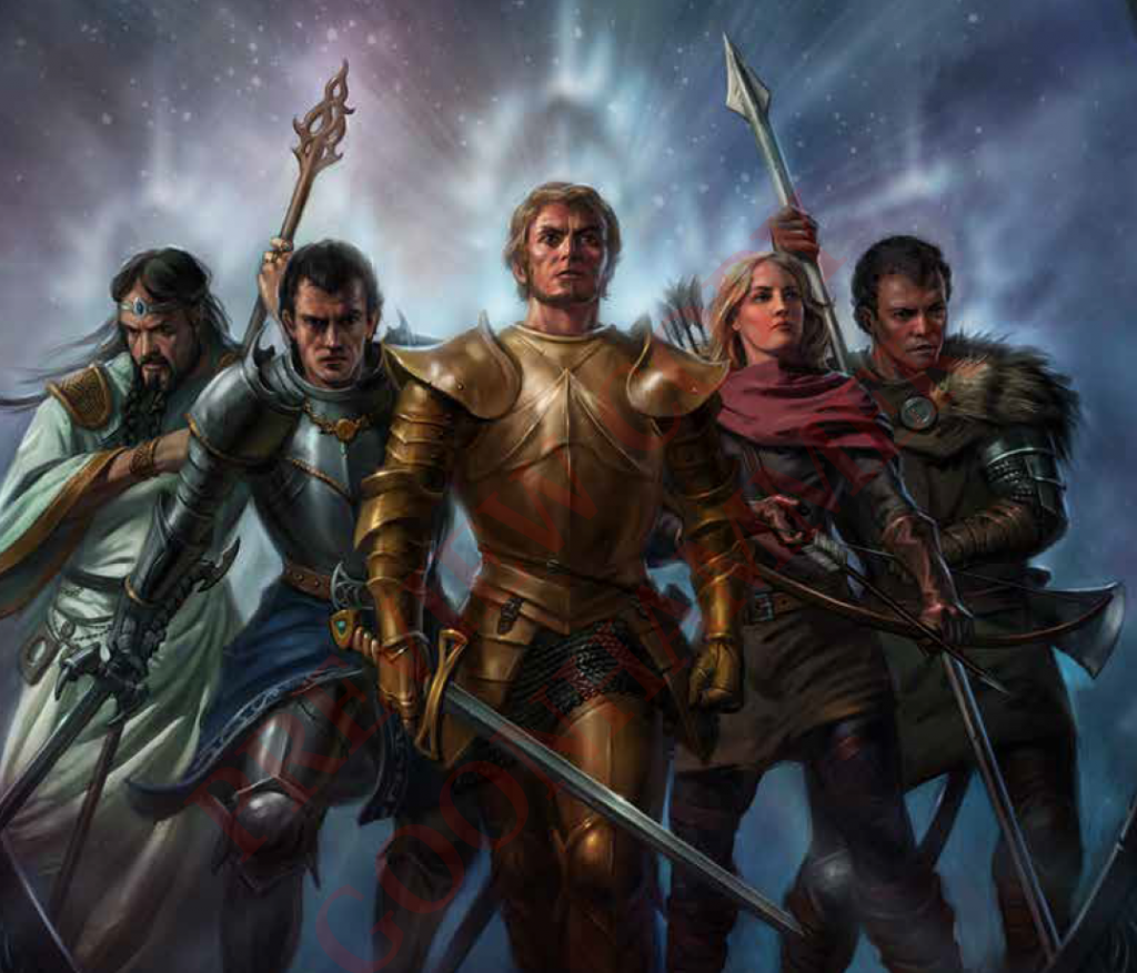 Cover of the book "Rise of the Celestians" by C.L. Werner. Left to right is Valandor, Oskan, Mescator, Liliana and Kyron. Credit: Mantic Games