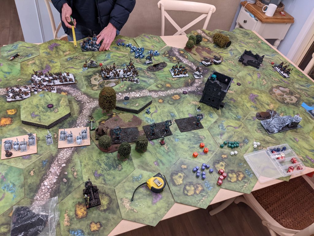 Now, I don’t want to take anything away from Andrew, he was a great player and good sport, but I don’t think I’ve ever played a game where the dice were so against me. If I ever needed any luck, I couldn’t get it. I had the Revenant Horde on 18+ wounds for 4 turns, and couldn’t take them off, including the dreaded double ones (twice!!!). The Frost Giant couldn’t kill the Wights despite charging in the flank, and the Night Raiders couldn’t put a single wound on an injured Revenant Cavalry troop, so they were re-charged with full Thunderous Charge to take them off.