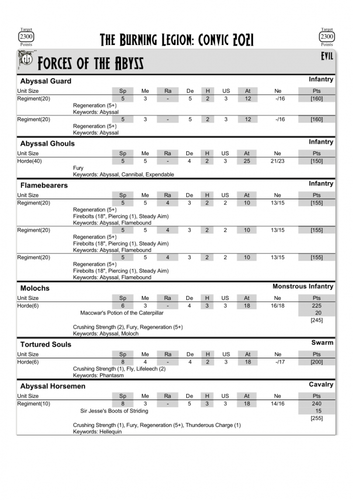 The Abyssal Guard and Abyssal Ghouls make a set of solid anvils, capable of dealing with different types of hammers; high volume, low crushing and vice versa. Abyssal Horsemen are the fast hammers, trying to get flanks, while the Molochs just walk forward and smash anyone who gets in their way.