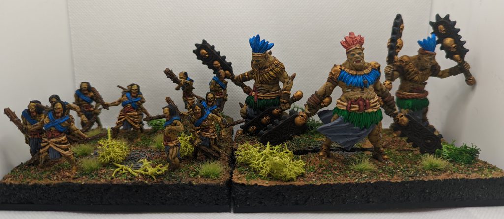 Speaking of theme, I am going for an Aztec inspired army, using the Mythic Americas range from Warlord Games (here). As soon as I saw the models, I knew I had to make an army out of them, and after a while of looking settled on Varangur. This was mostly because of the mix of undead and living forces which matched the models I was most excited about; the Tlalocan-Bound Dead (Draugr) and the Tlalocan-Bound Marauders (Fallen).