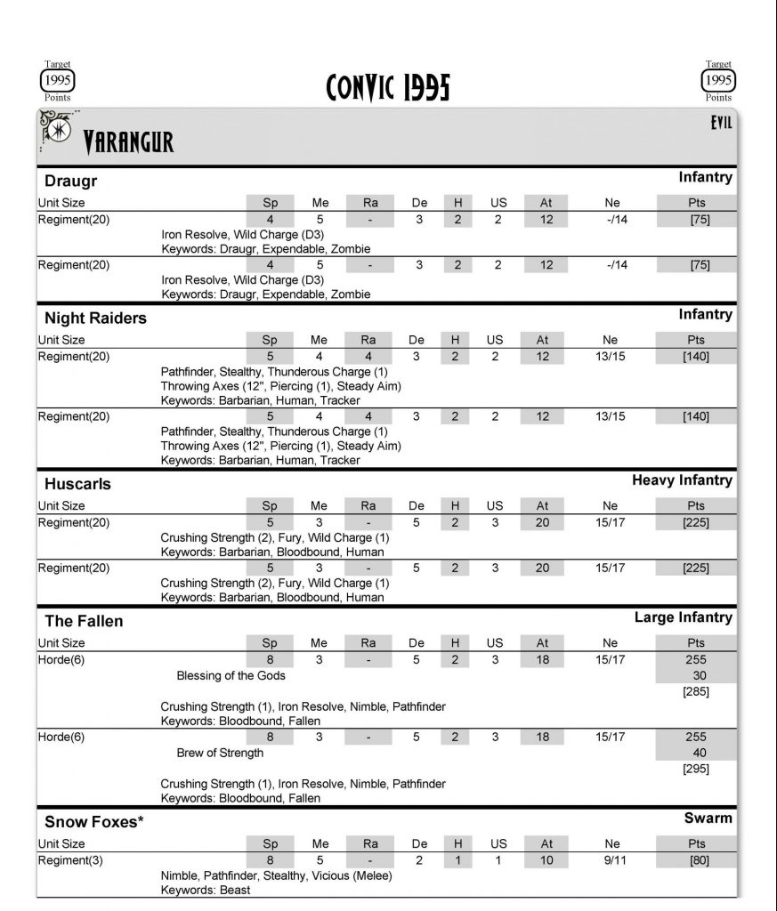 I’ve got a pretty solid set of lists, I think. It’s a bit different from the usual Varangur lists as it’s all infantry, but I’m going with an Aztec style force which means no horses for me.