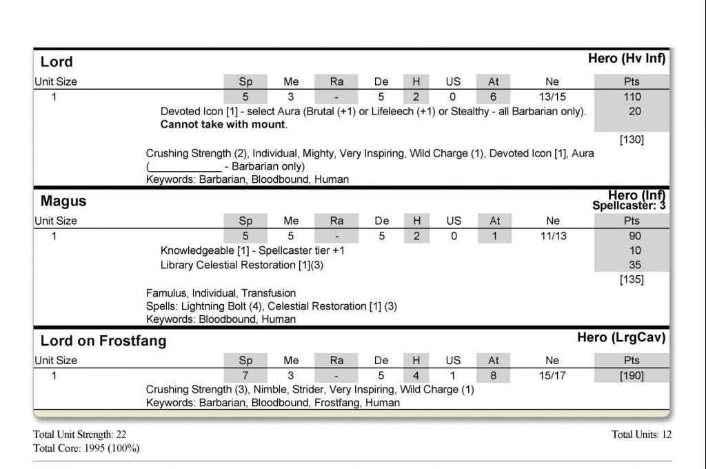 There’s quite a bit of Defence 5 among the units here, so it should be hard to chew through for most opponents, and Celestial Restoration on the Magus should help keep anything important that does get hurt alive.
