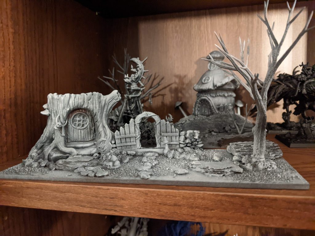The look for my Goblins’ world will be that of creepy forests and foreboding swamps such as the forests in Robert Eggers’ “The Witch” or the Crookback Bog of Velen in the Witcher universe. The idea is that this will twist the comical look of Goblins into something more sinister. There will be a few trees (not too many, I have learnt how annoying trees can be on multibases), as well as some “fairytale” huts I will be painting in a very sinister fashion (hopefully).