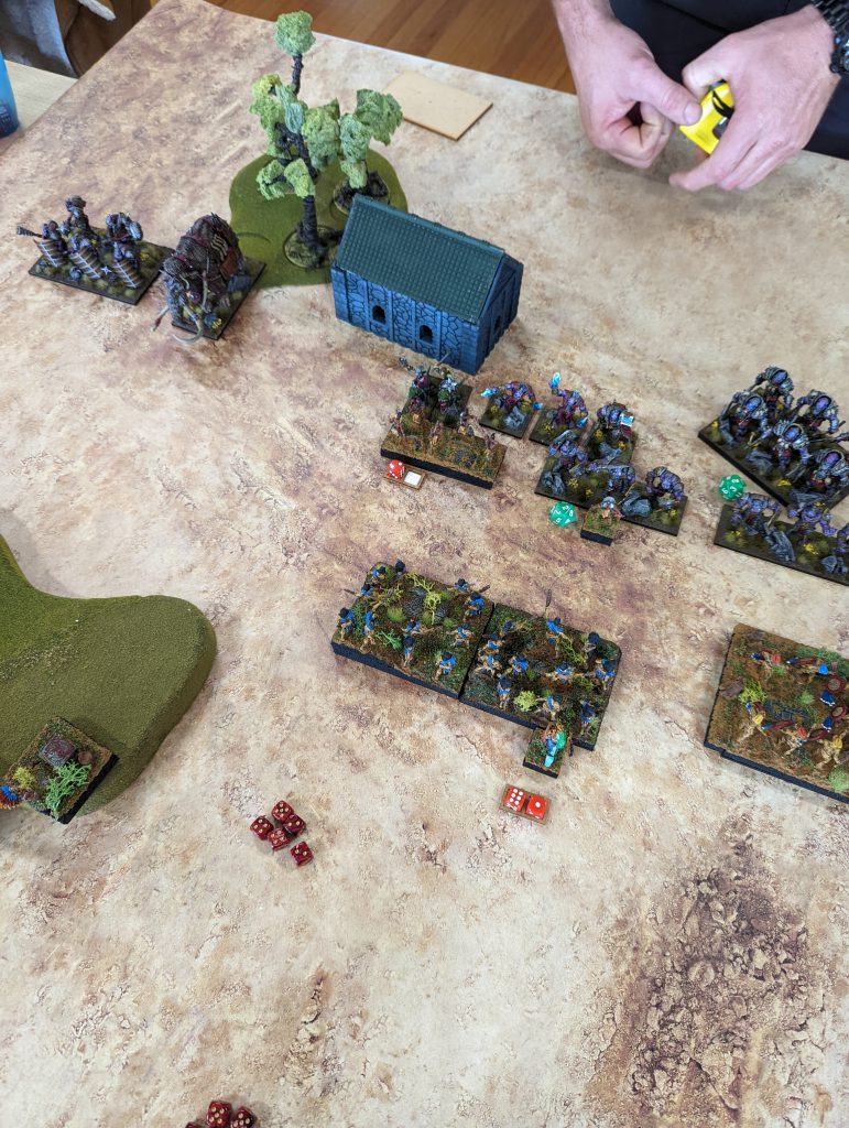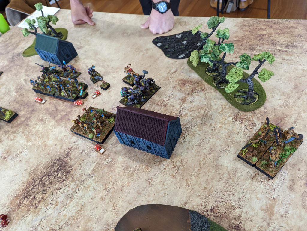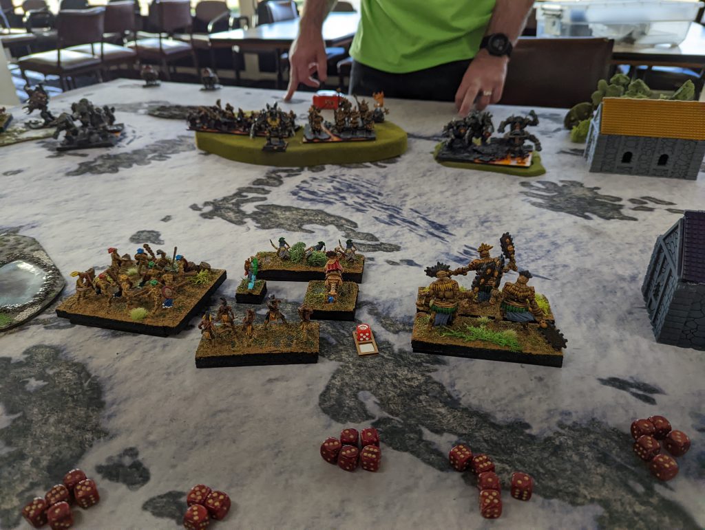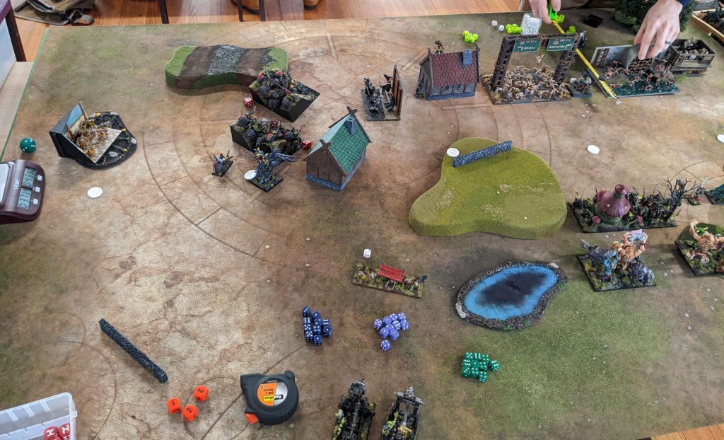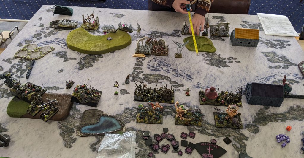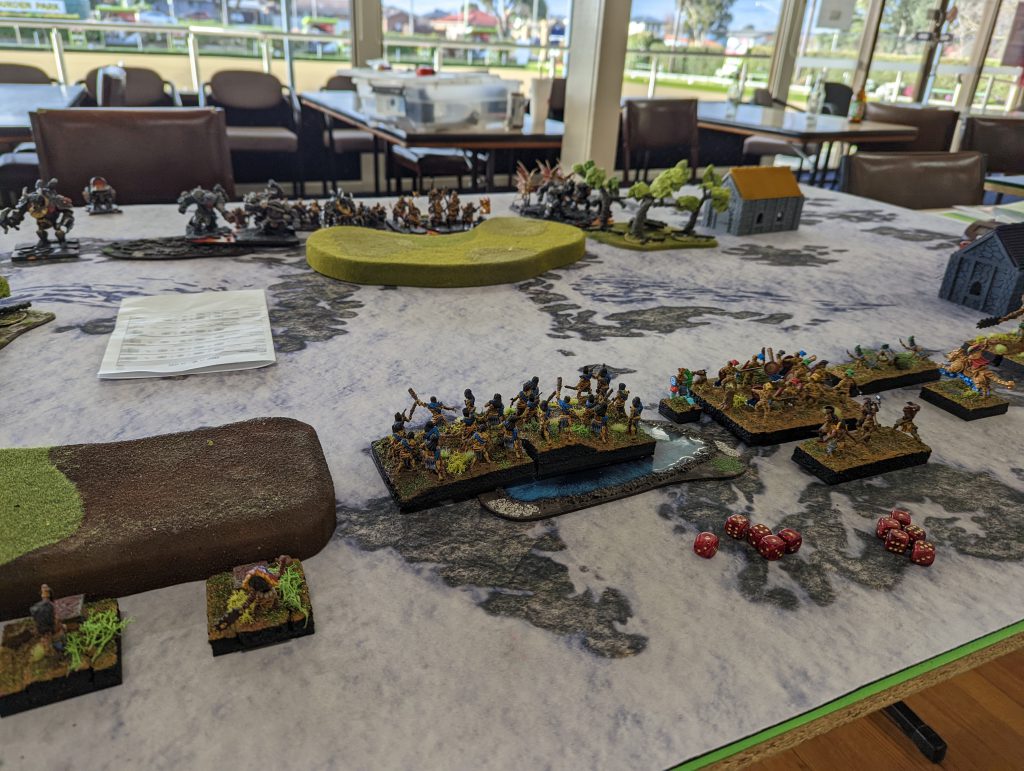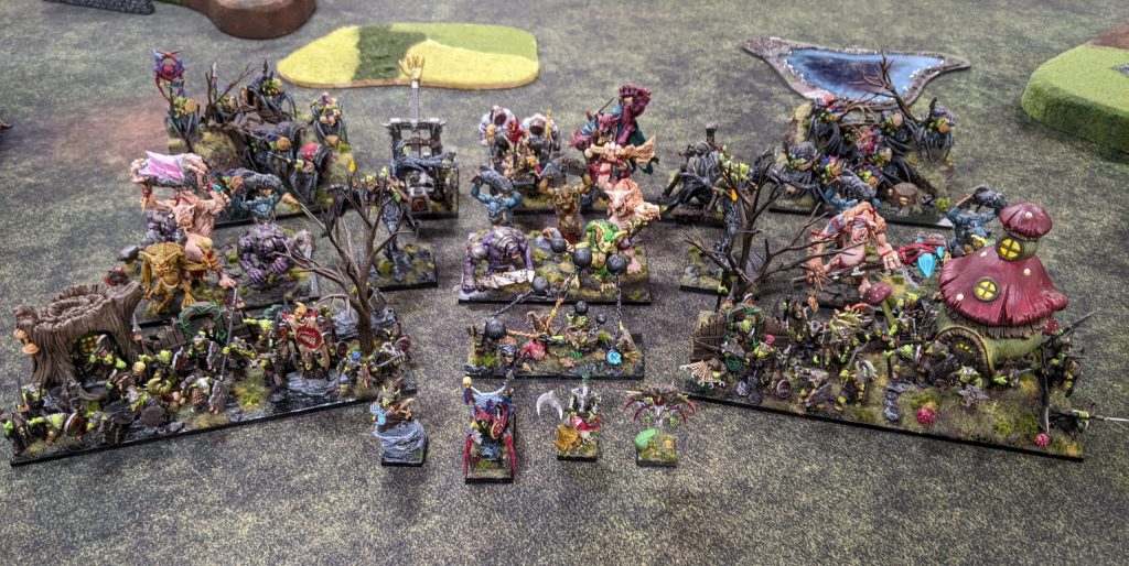 Elite from the Goblin King on Fleabag, because without it Melee 4+ is too unreliable. At the same time, I should have been somehow faster with my mainline units, get them into the forest to threaten, maybe even do away with deploying Goblins in front so my Trolls with their Speed 6 could have moved into range quicker. Unfortunately, at four games in a single day, my decision making was not fantastic, and in some ways I was running on autopilot.