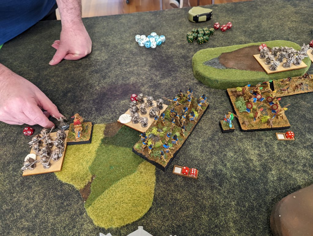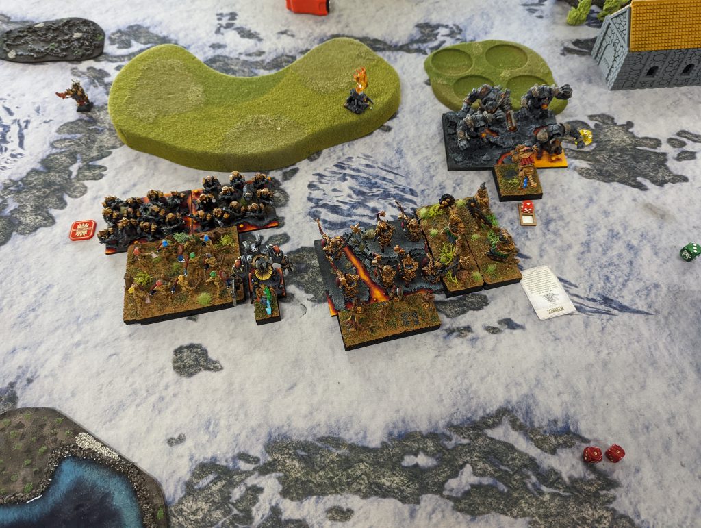 They do die on Rob's next turn, as the Lord on Foot is wavered, thanks to the Infernox, as are the remaining Fallen on the left, as the Golems have finally made it in.
