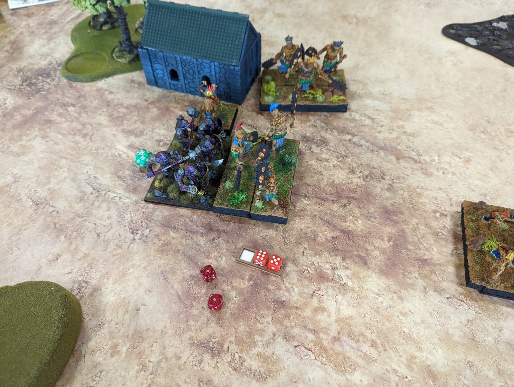 In short, Trolls lack the volume of attacks to remove legions of Zombies, where there Crushing Strength (2) counts for naught. I felt I had to rush into combat on Turn 3 to get some tokens for the legions grabbed them, but perhaps this was still premature. Ultimately, my army lacked the volume of accurate (Melee 3+) attacks to put a dent in those Legions and so my strategy should have been to delay while grabbing as many tokens as possible.