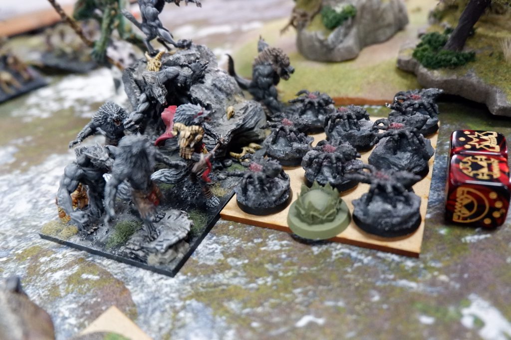Over the first two turns I pushed up to the center line. My Werewolves and Lykanis couldn’t help themselves and charged some Reapers (I really couldn’t stop myself), and they bounced, doing a very paltry eight damage. Unsurprisingly the Werewolves perished soon after.