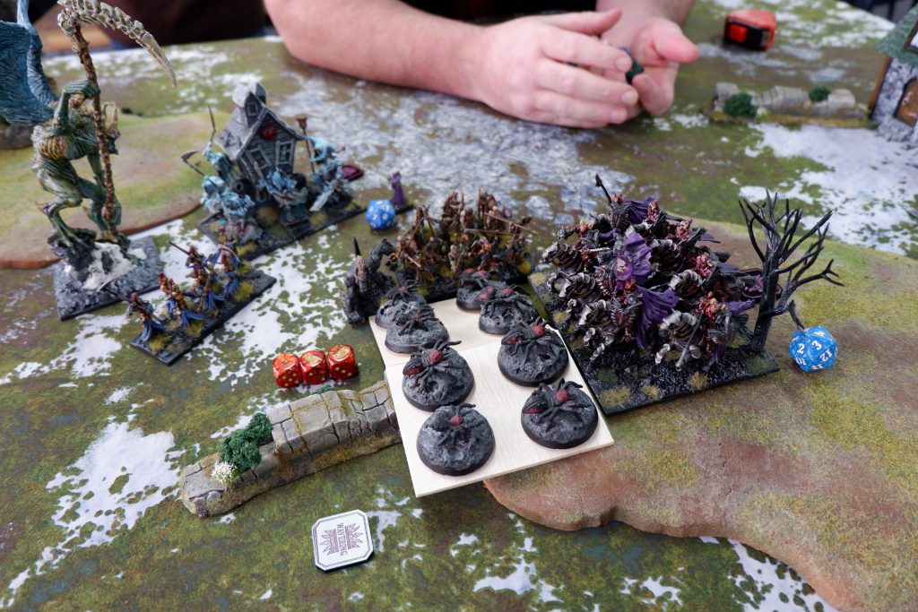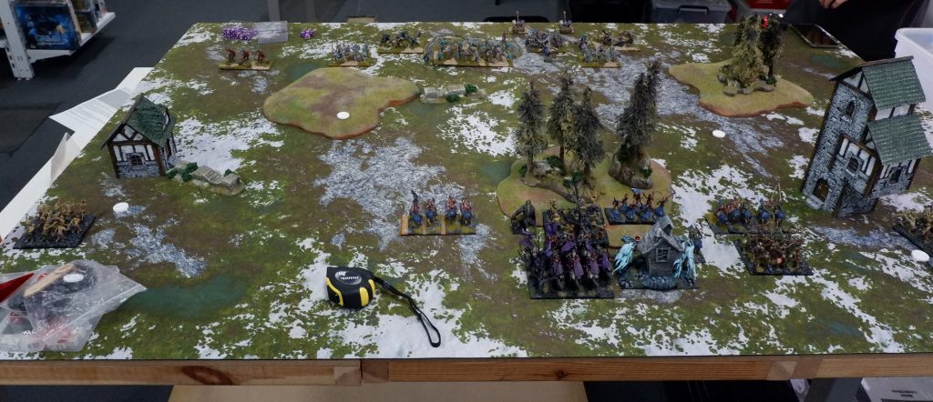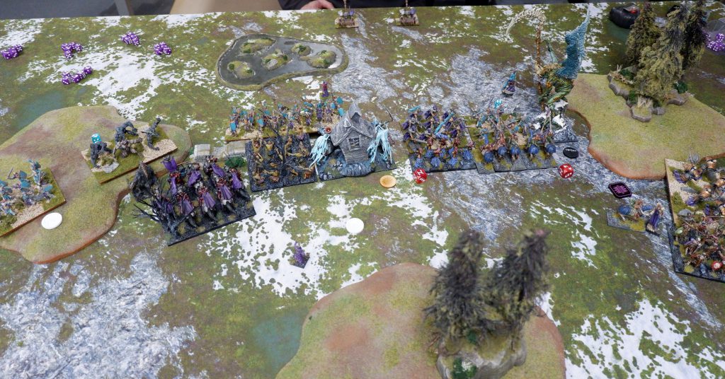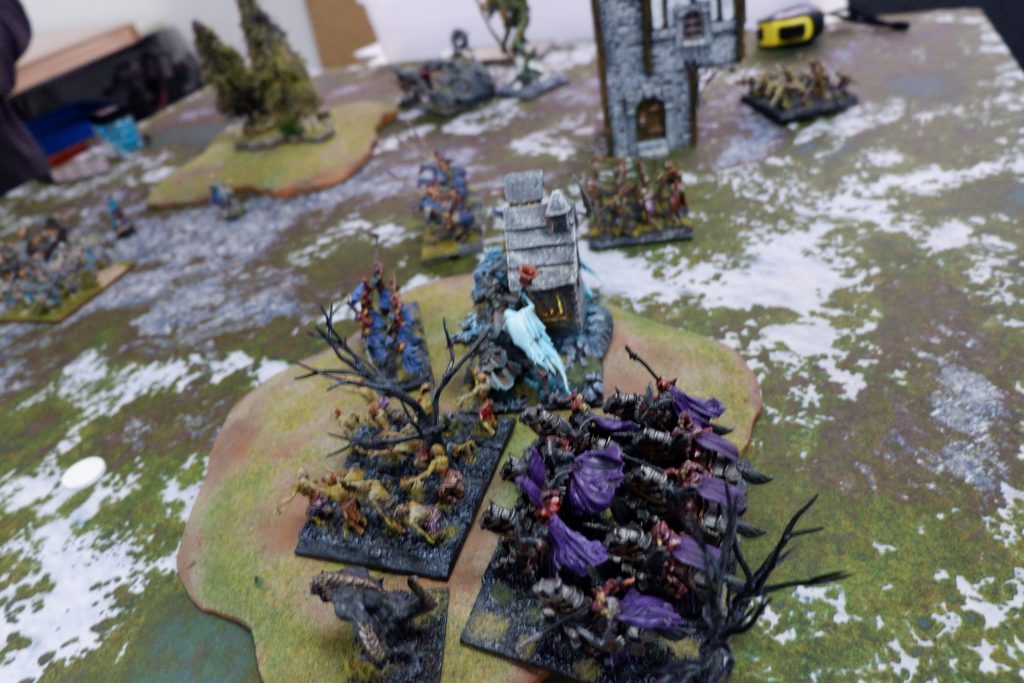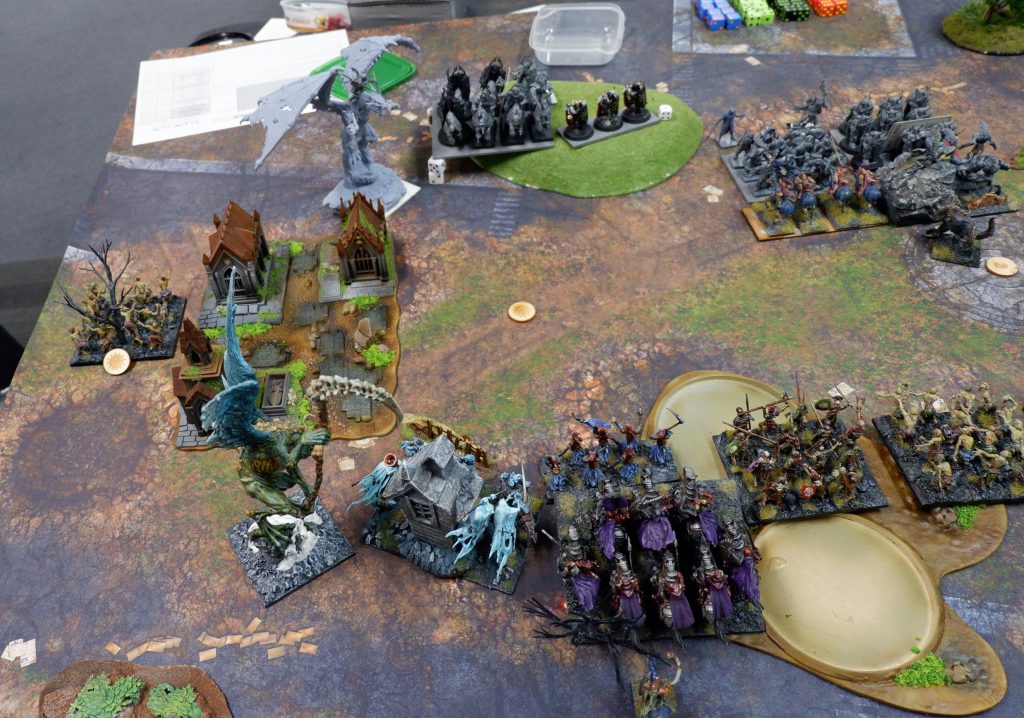 In the end I won. The Fiends were on my side of the battlefield, but my Wights, Skeleton Spearmen, Vampire on Undead Dragon and Lykanis were on his.