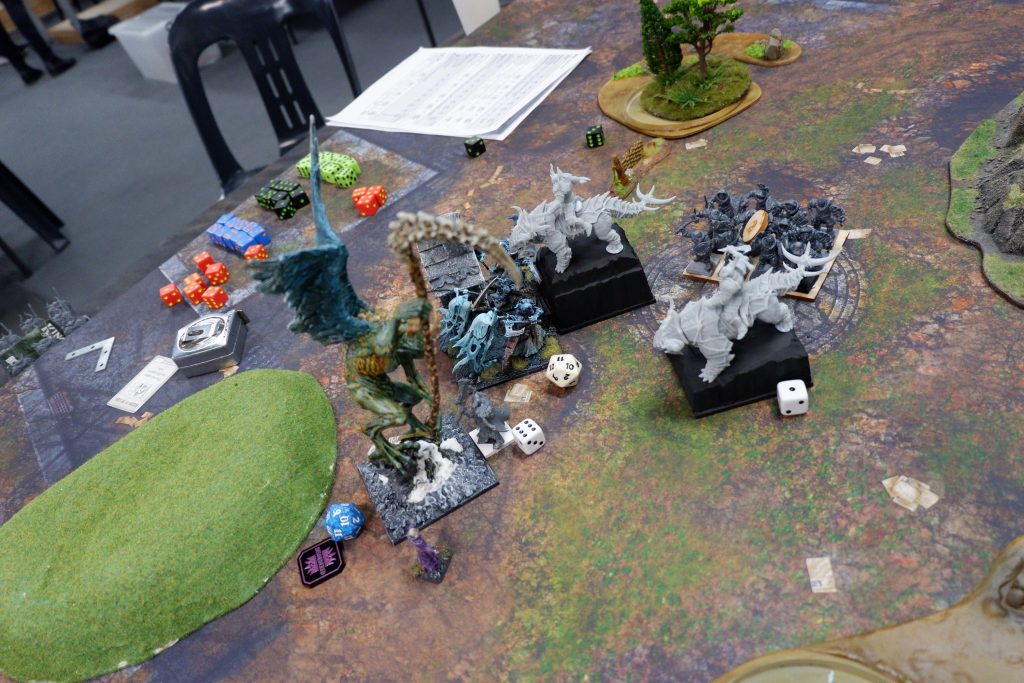 Another great game, coming down to the last combat. A win here was not something I expected going in, and definitely thought was out of reach after just two turns. I definitely made some mistakes, like committing on the right so early. I realise as I am writing this, that the Chimera couldn’t have flown over the Ancients while holding a token. Luckily, this doesn’t change the outcome of the game. The token could have been dropped and picked up by the Fallen, with no issue. Magnilde continues to do the work, and Crown of the Wizard King has been proving itself to me. This time it let me get the Bane Chant off despite being Hexed. I liked the Chimera too, I just wish Icy Breath was a 12” rather than 10.