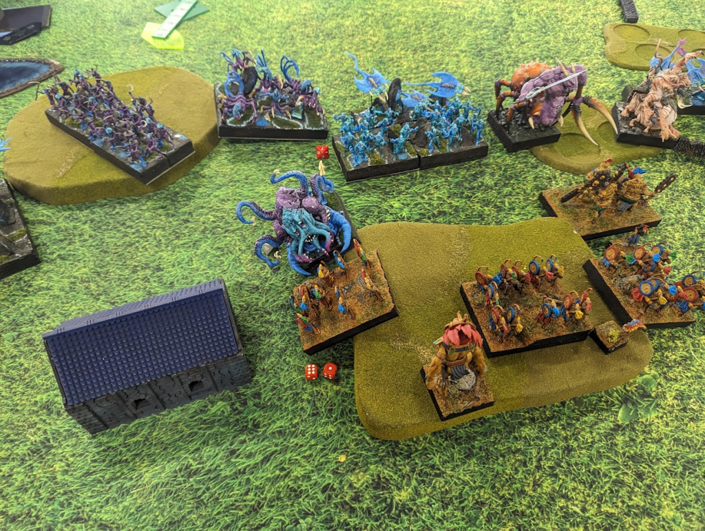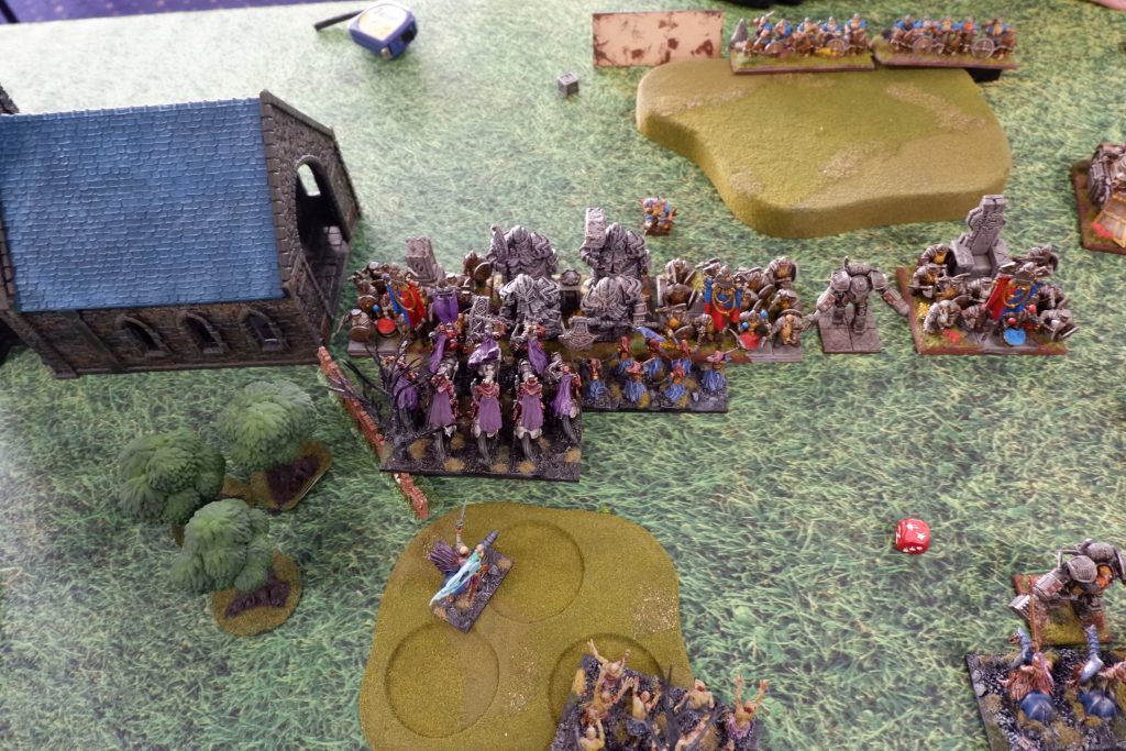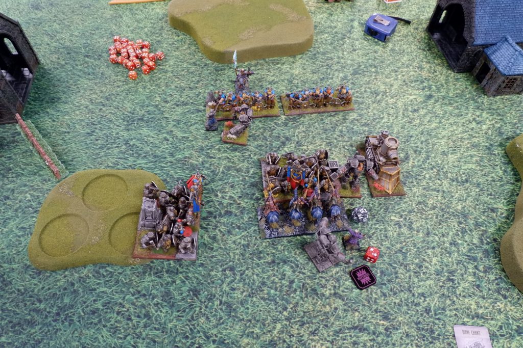 The Wraiths crumpled to a flanking Faber Ironheart, but the Soul Reaver Cavalry would live until Turn 4. Unfortunately they did not manage to finish of the Earth Elementals, and soon this whole side was free to walk towards the centre.