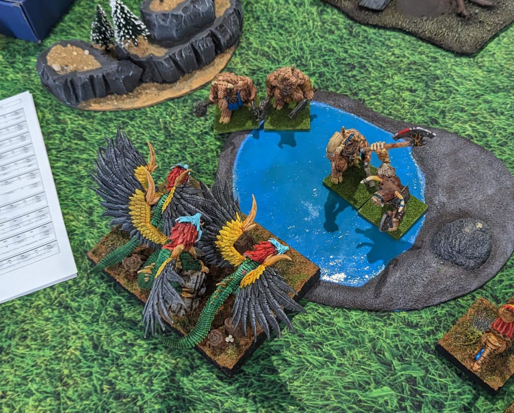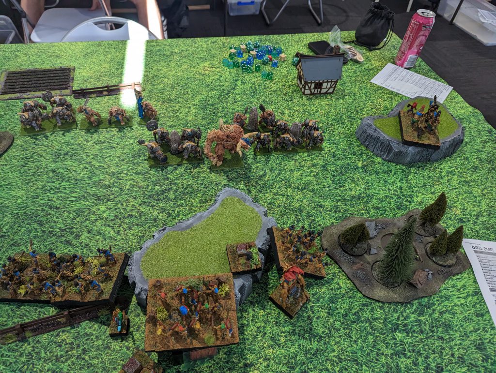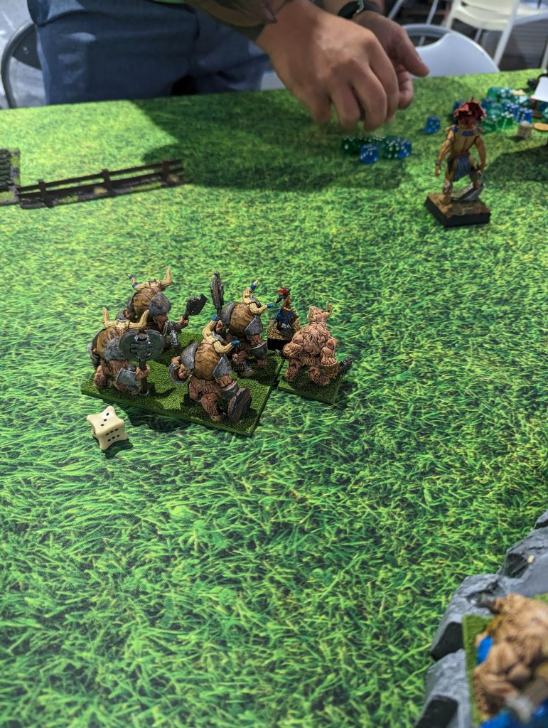 Bovine Ogres (top) advance on my Varangur (bottom).