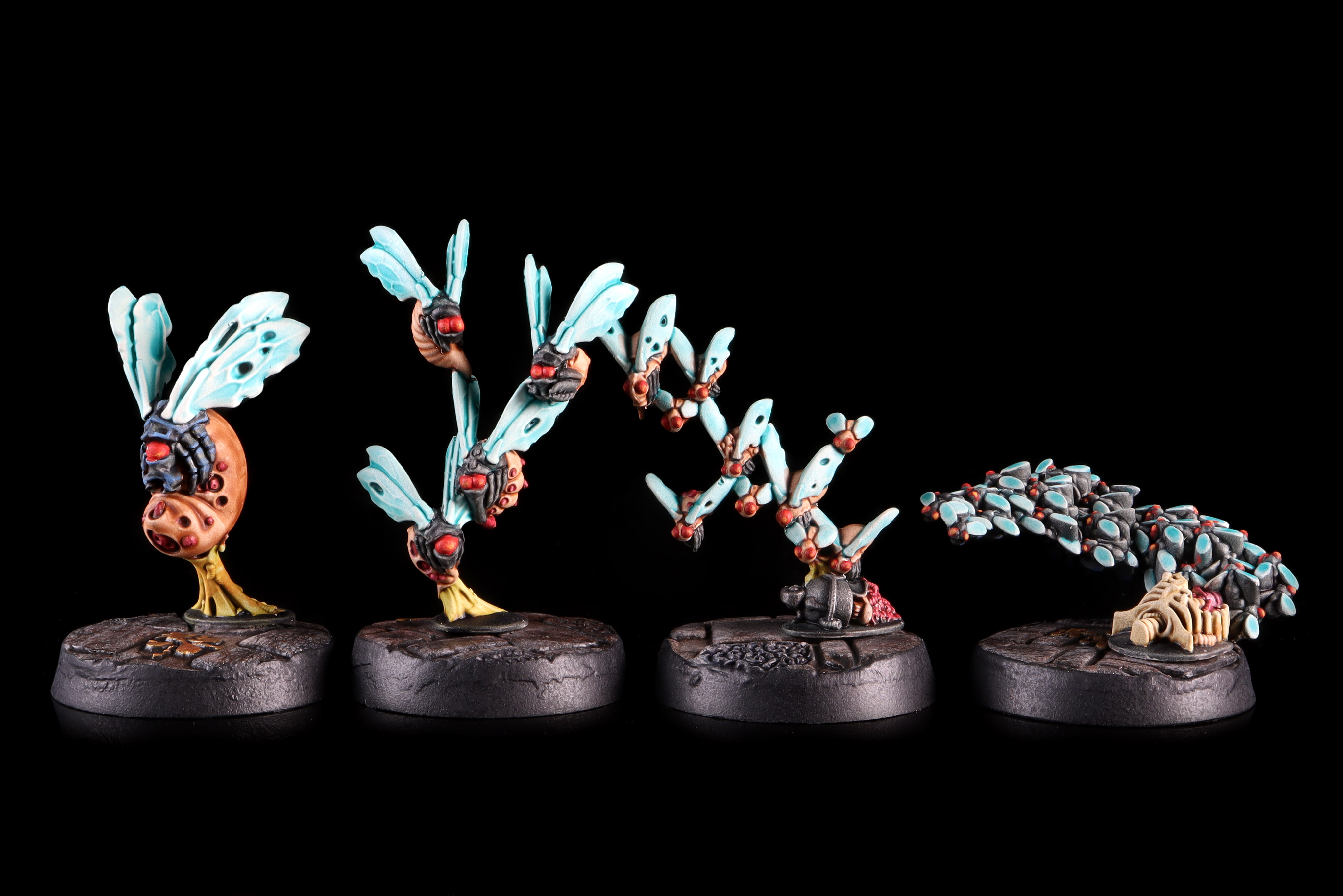 The flies have 6" movement and come with a ranged attack. Well, kind of - they get 5 shots at a 6" range with the No Cover ability. These hit on a 6+ and do 0 damage but have the