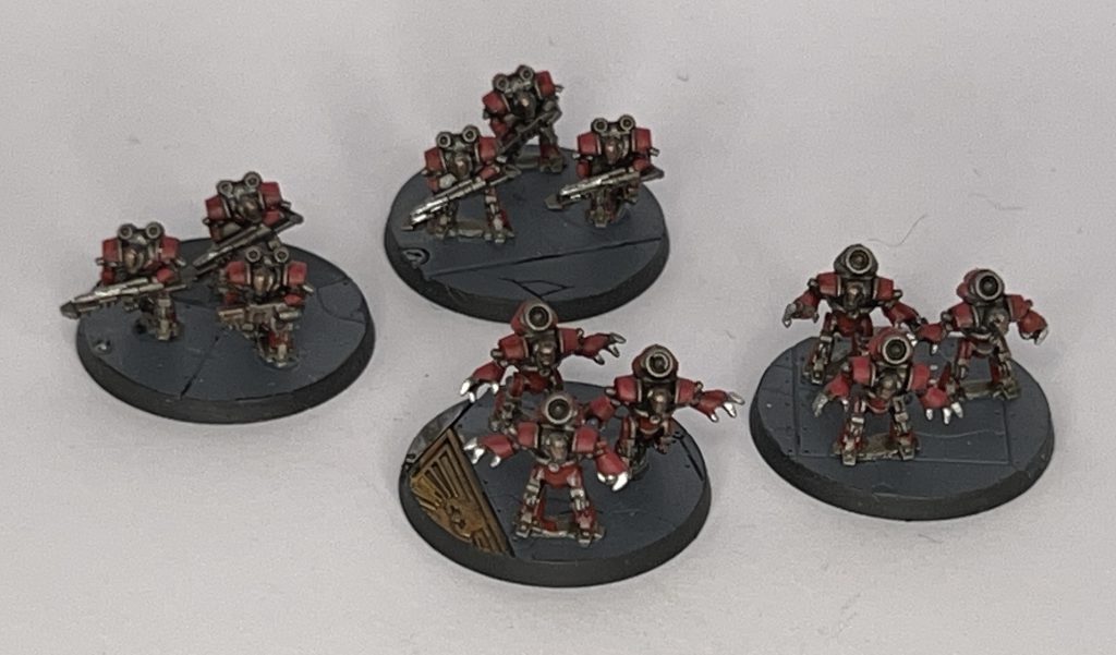 Many of these units start out with just a single base but can be expanded beyond that. Expect to see single robots wandering the battlefield at times, but also quite chunky units of multi-wound walkers that will be tough to get rid of.