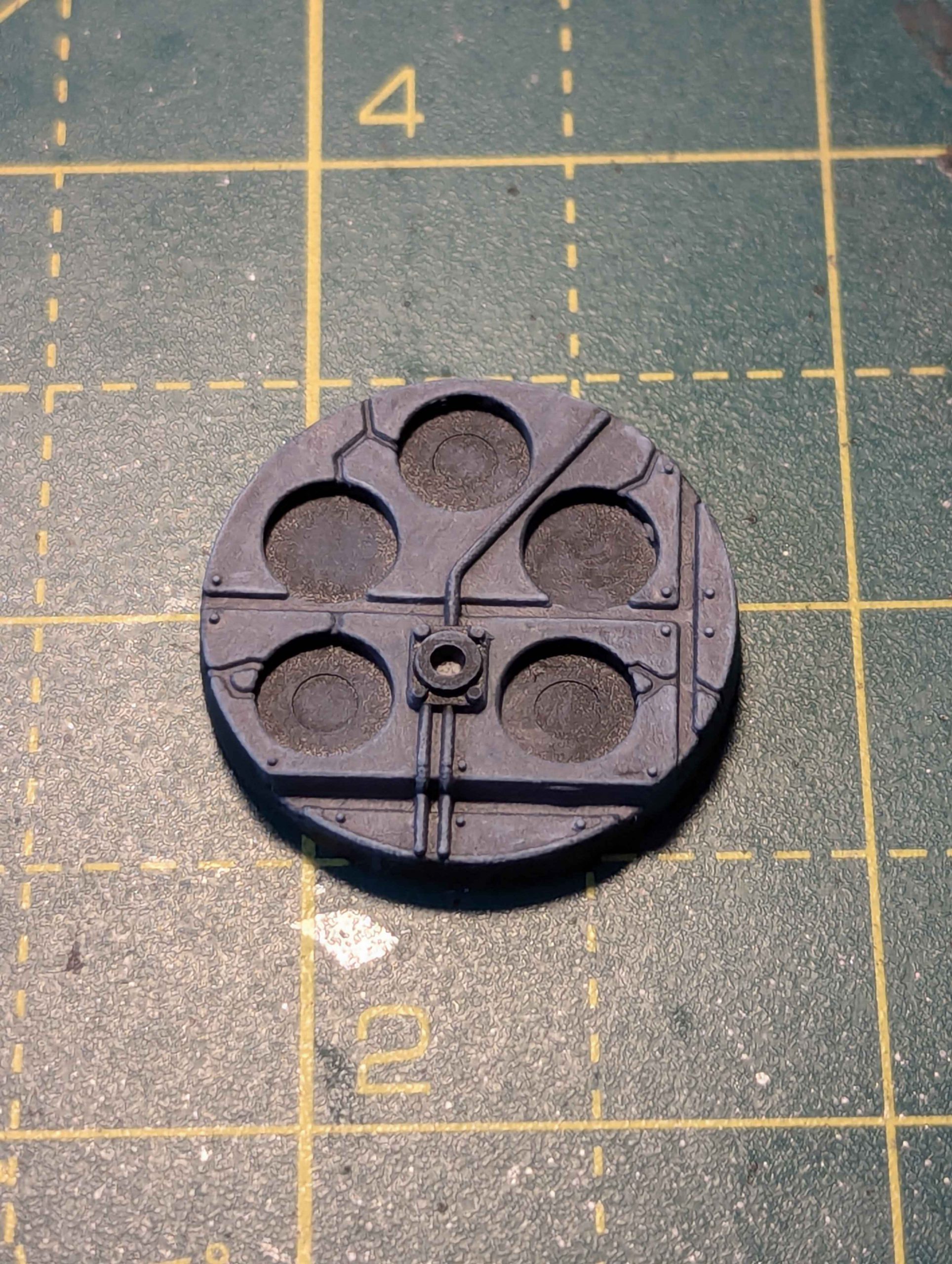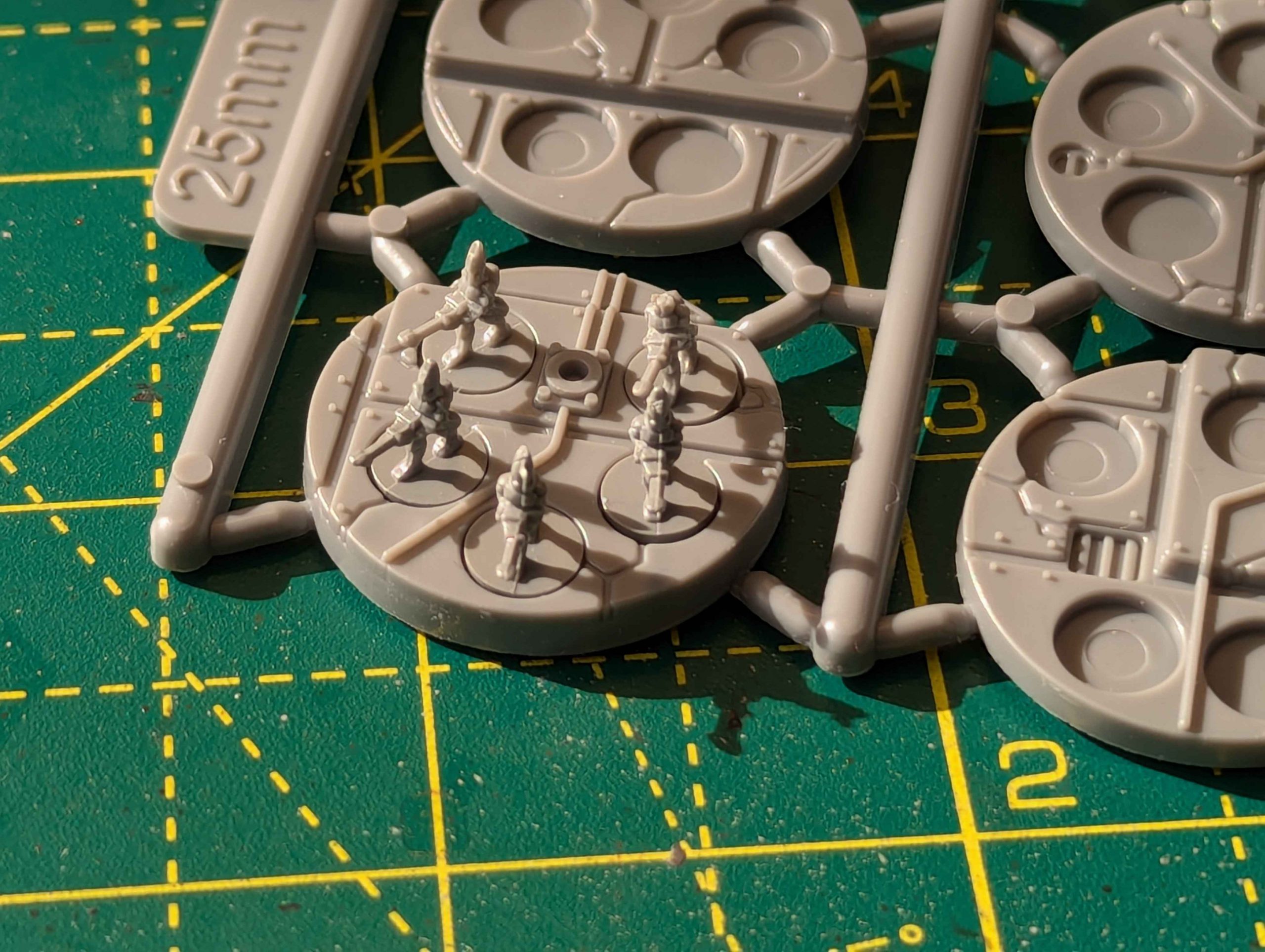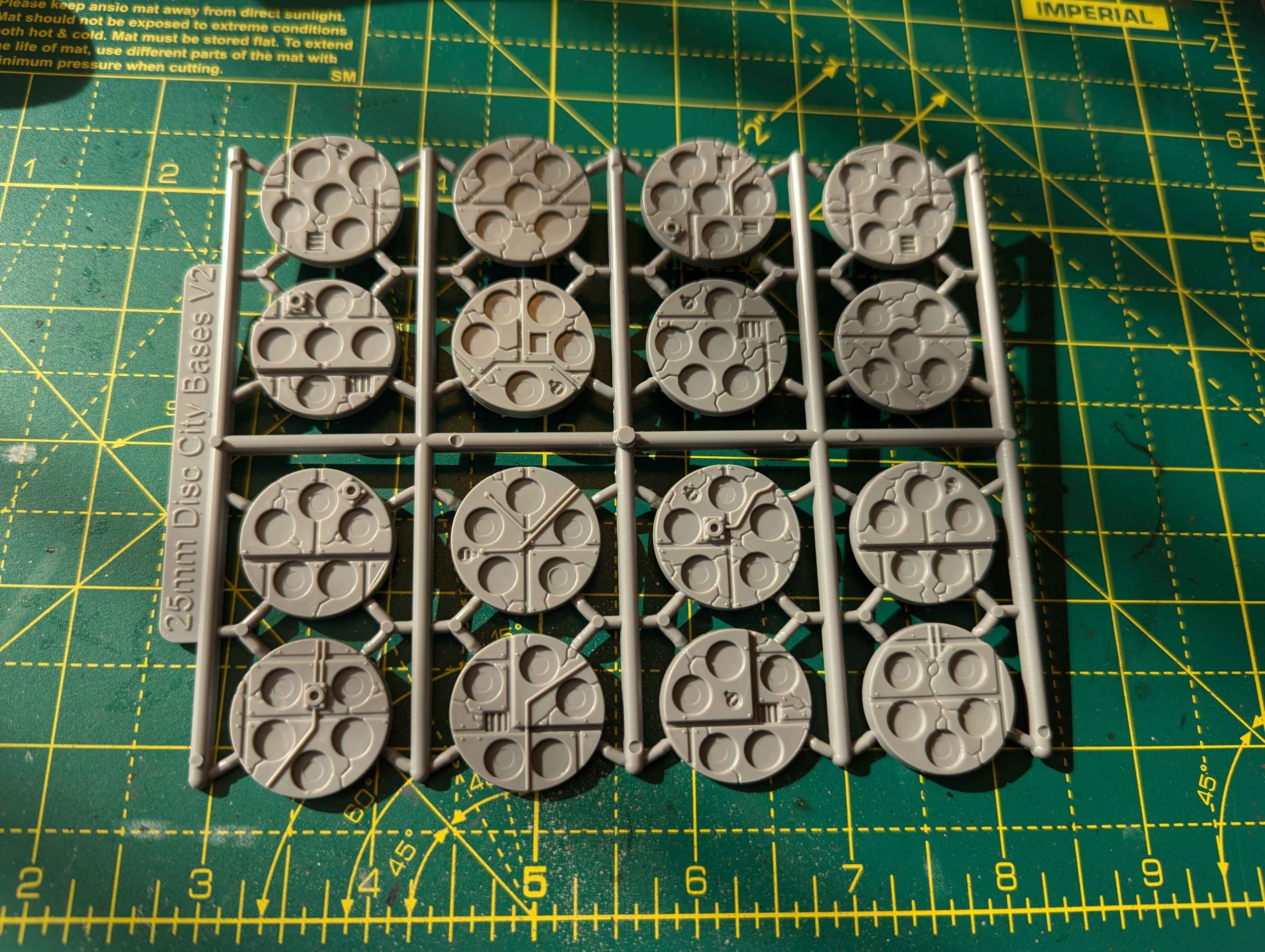 The sprue makes me think it may be made using an aluminium tool, but the detail is crisp and the molding good. 16 different designs means it is unlikely you'll repeat a base within the same detachment.
